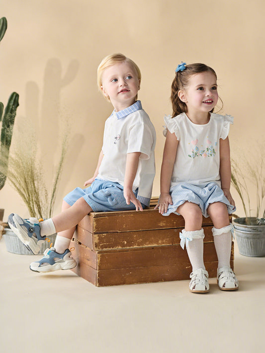 Dave&Bella Toddler Girls Summer Cherry Embroidery Breathable Cotton Sweet Shirts