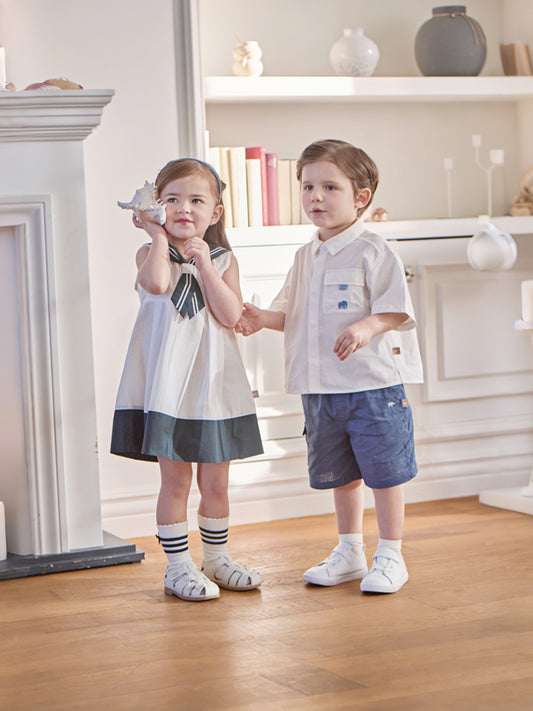 Dave&Bella Toddler Girls Blue/White Cotton Sweet Doll Collar Shirts Tops