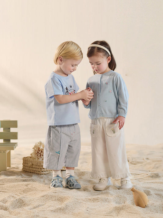 Dave&Bella Kids Boys Cute Blue Long Sleeve Lightweight T-shirts