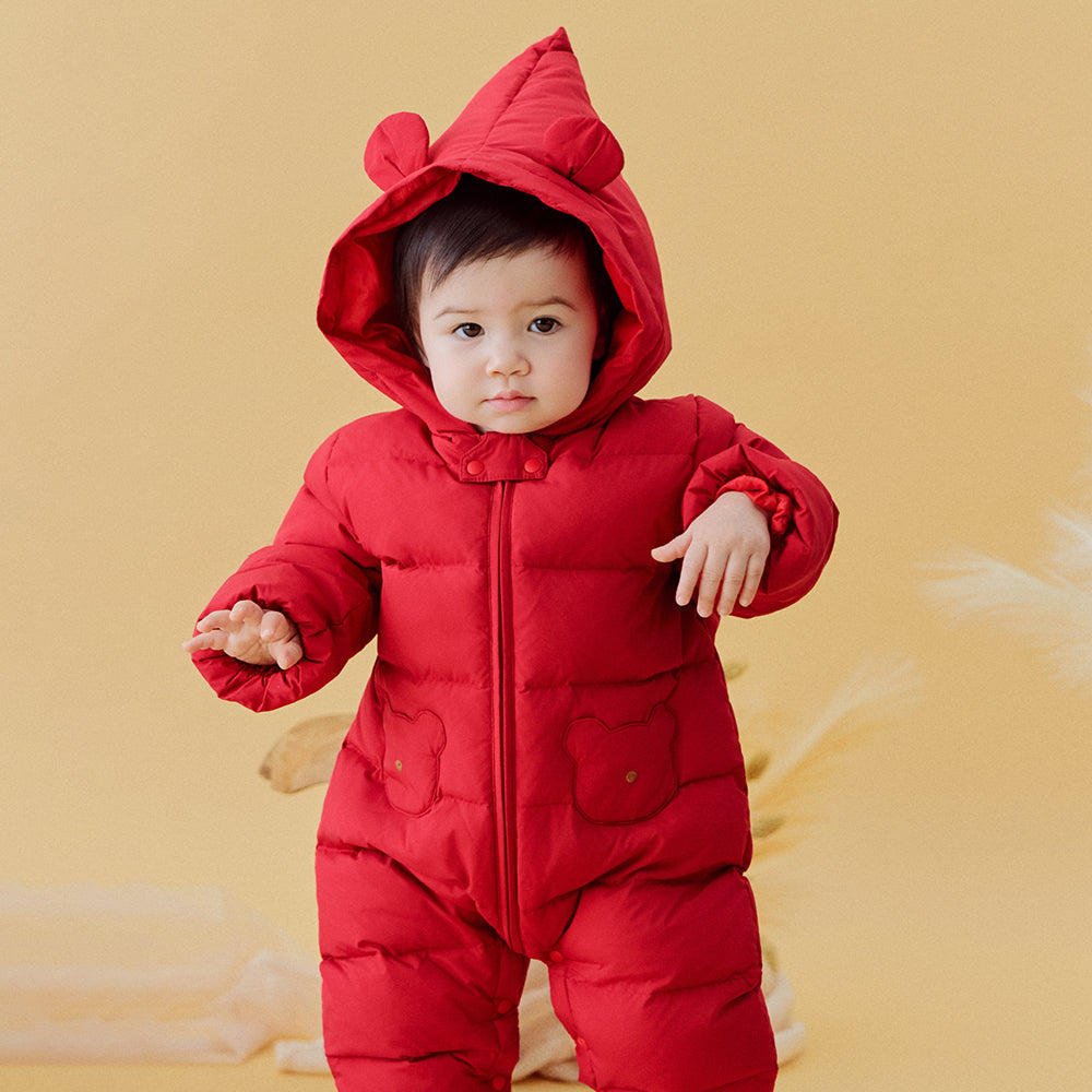 Dave&Bella Baby Girls/Boys Winter Festival Red Warm Windproof Hooded Down Rompers