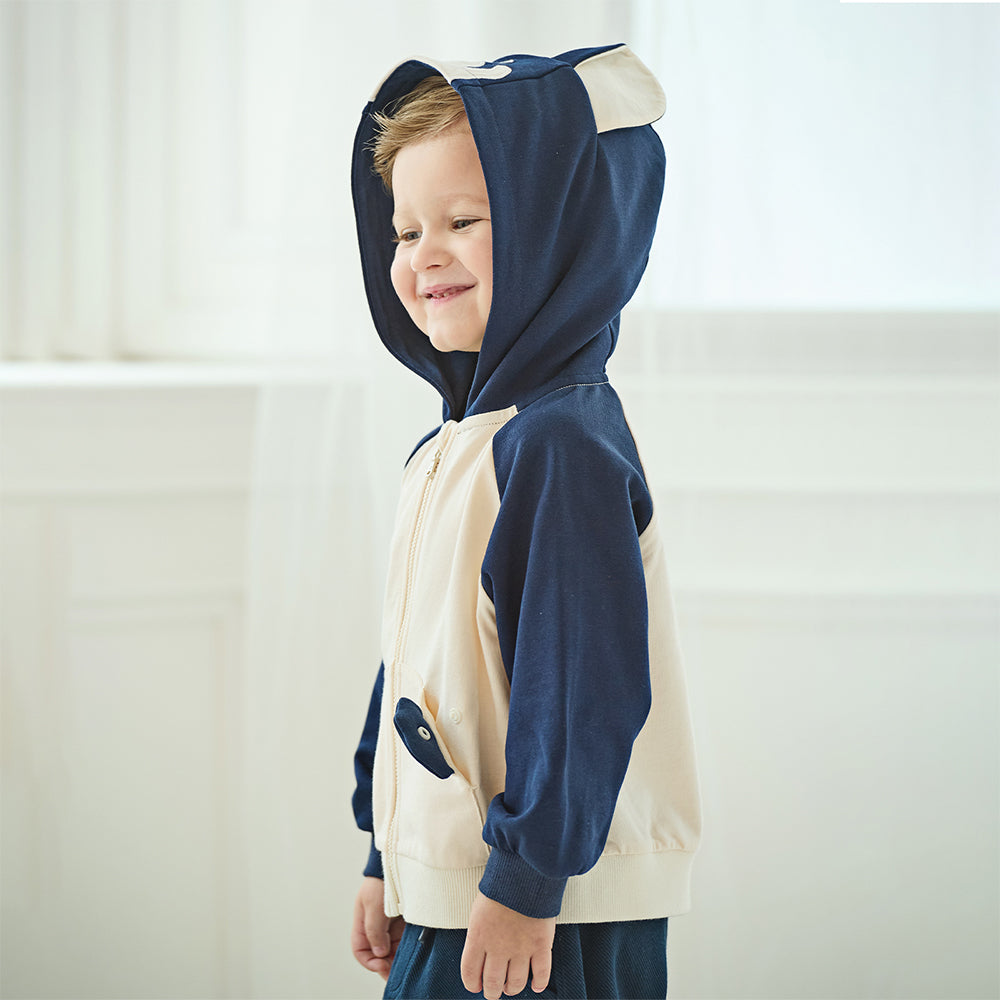 Dave&Bella Boys Autumn Casual Navy Blue Cute Animal Ears Hooded Jacket