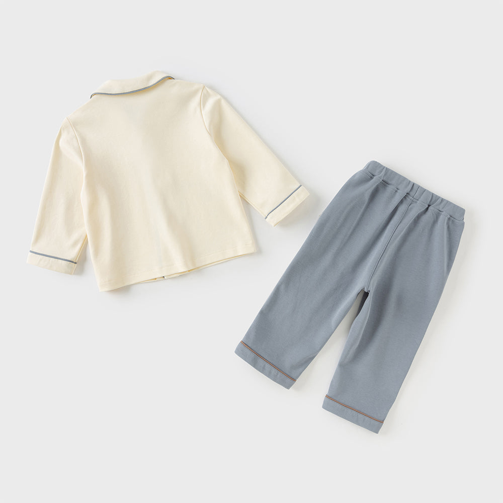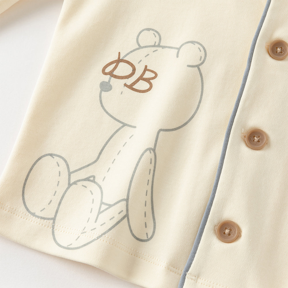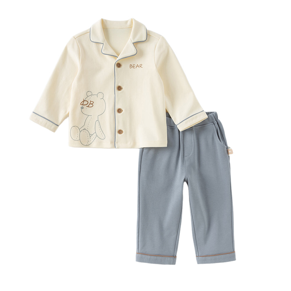 Dave&Bella Boys Autumn Cotton Beige Bear Print Knitted Pajamas Homewear Two Piece Set