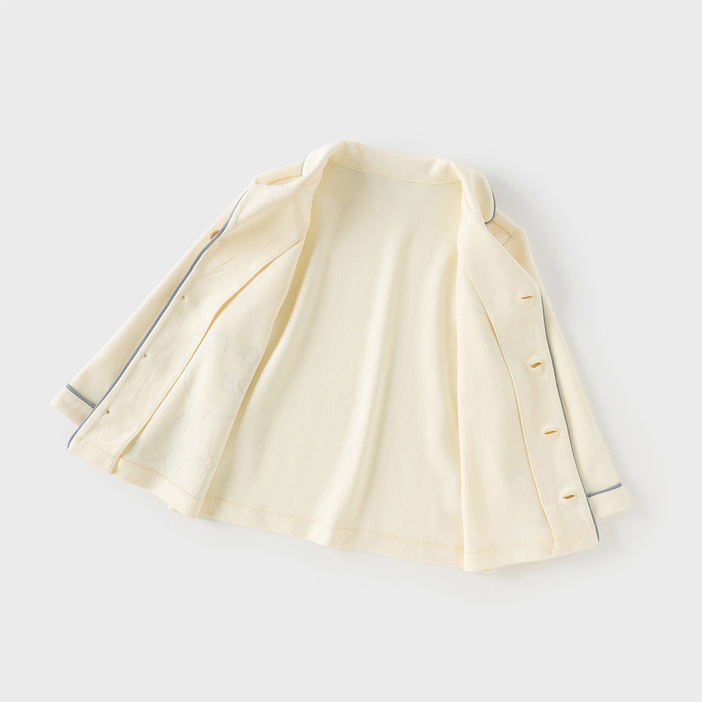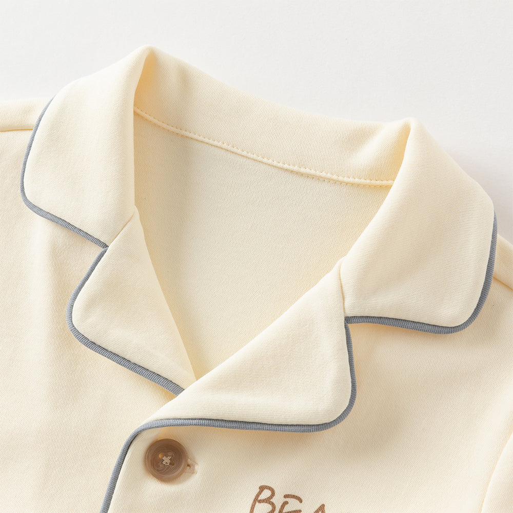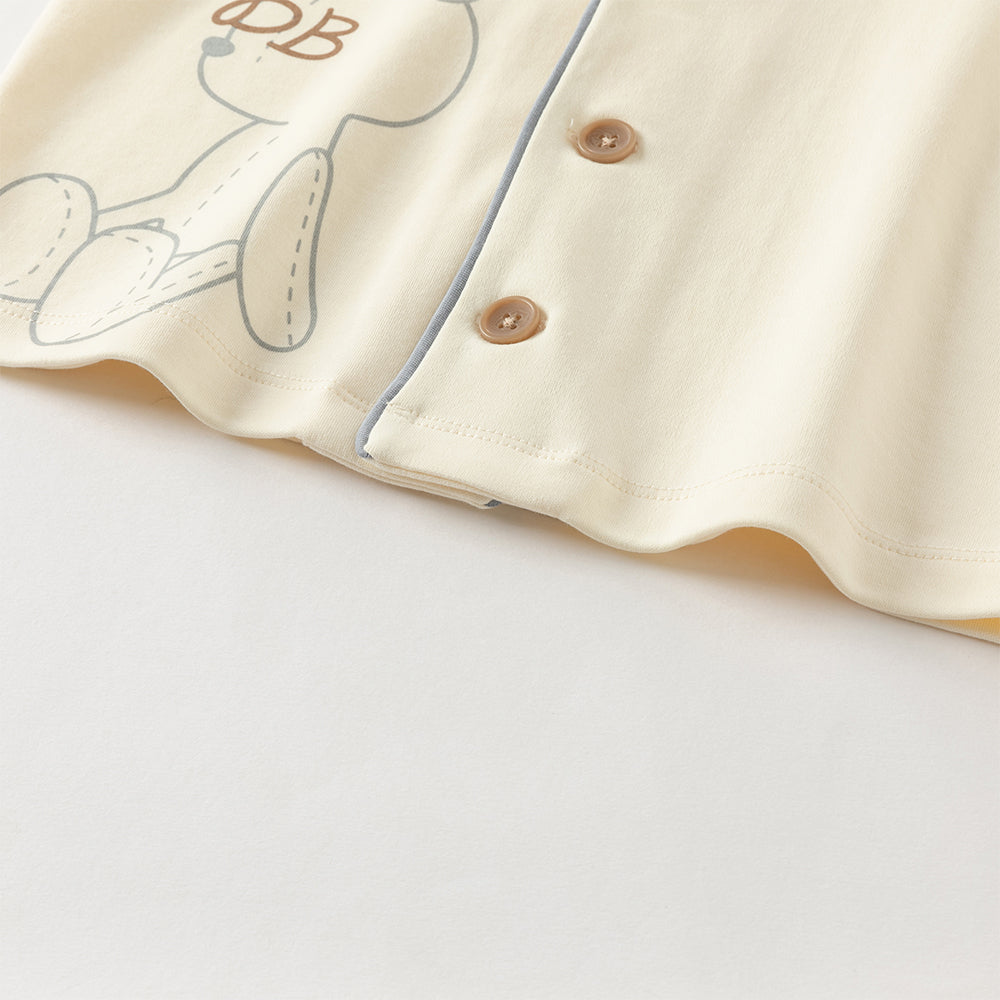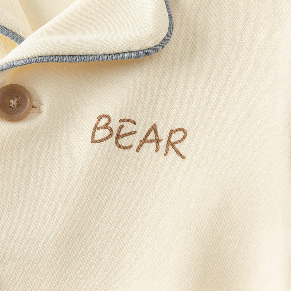 Dave&Bella Boys Autumn Cotton Beige Bear Print Knitted Pajamas Homewear Two Piece Set
