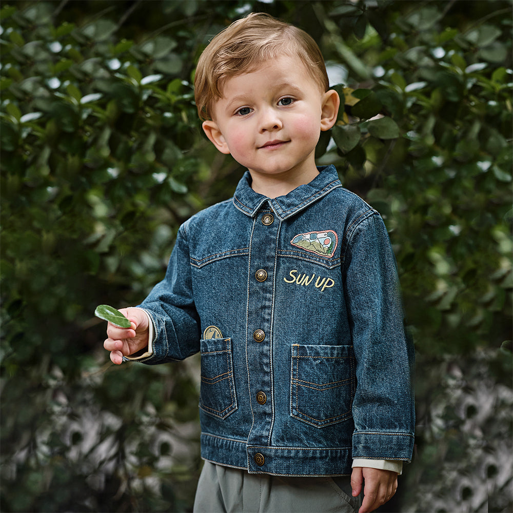 Dave&Bella Boys Autumn Cotton Denim Blue Casual Long Sleeve Jacket Coat