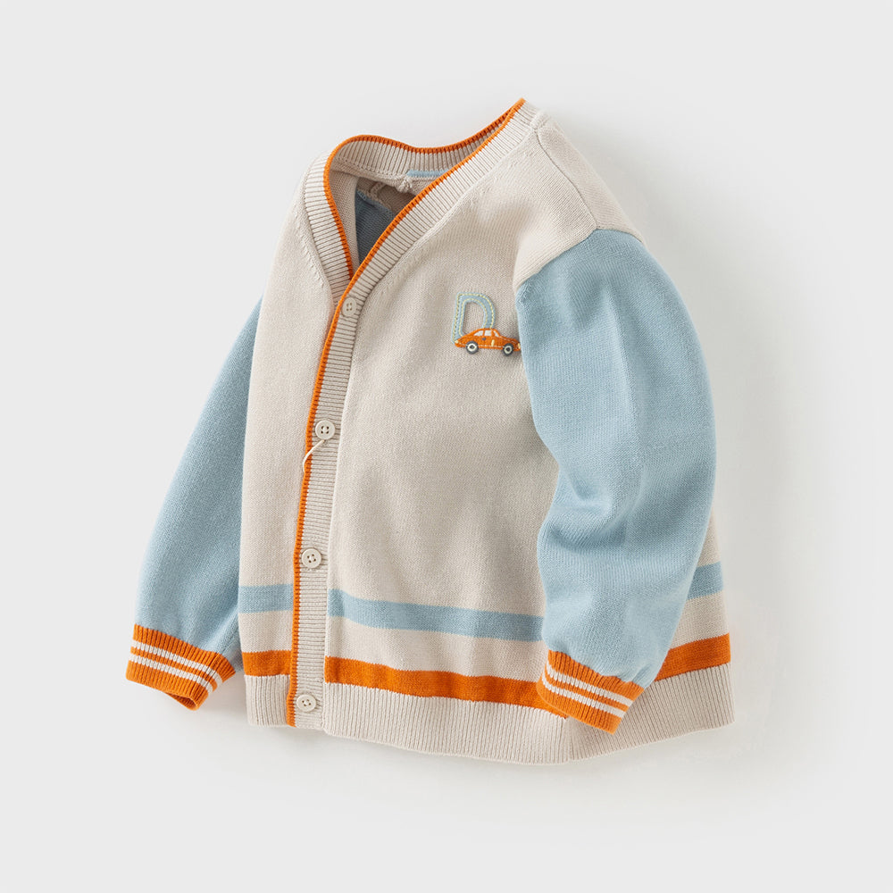 Dave&Bella Boys Autumn Cotton Light Grey Knit Cardigan Casual Jackets