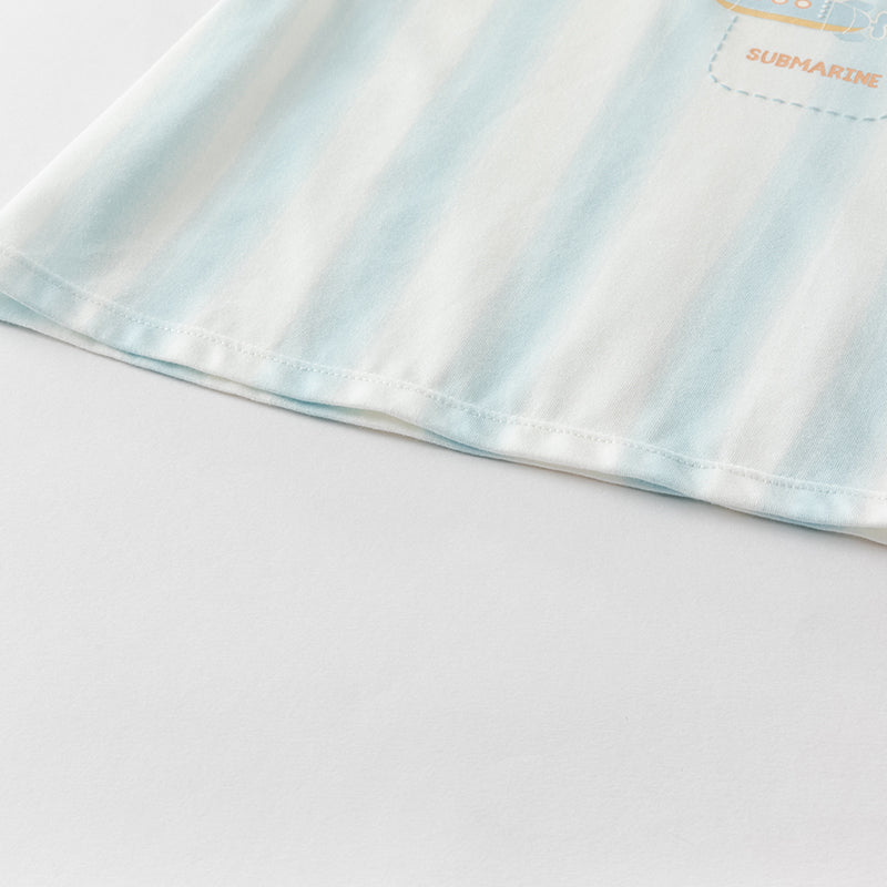 Dave&Bella Boys Summer Fresh Thin Blue White Striped T-Shirt Short Jeans Set