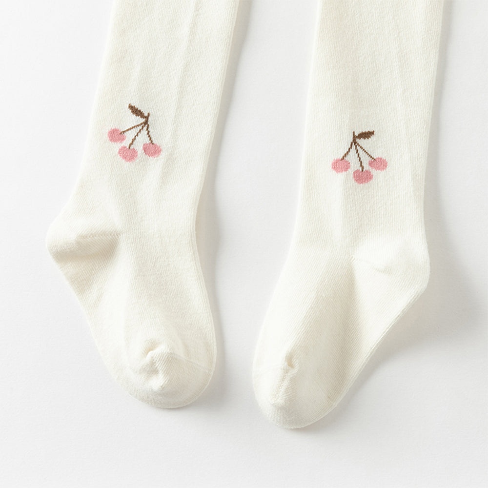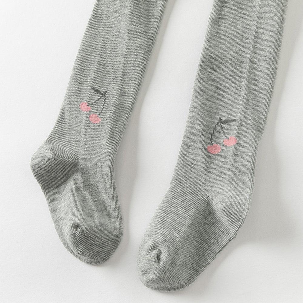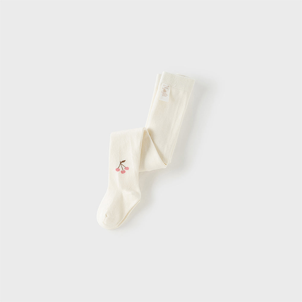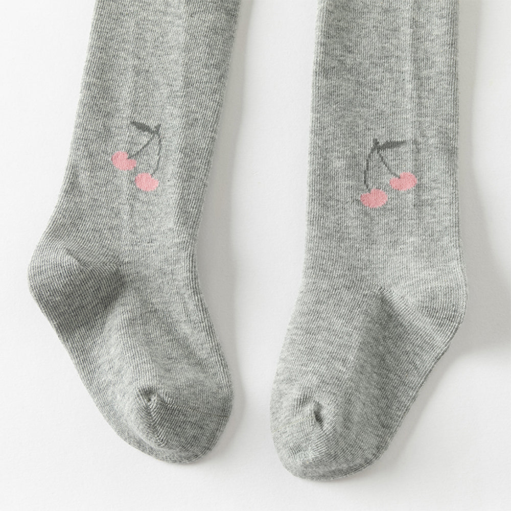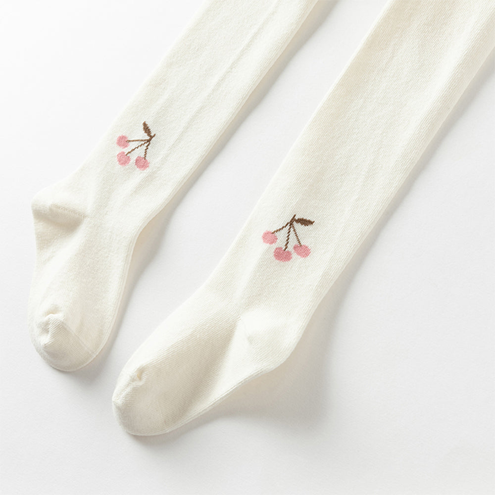 Dave&Bella Girls Autumn Beige/Grey Cherry Print Footed Tights Leggings
