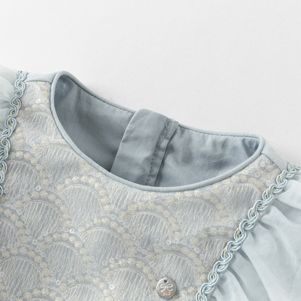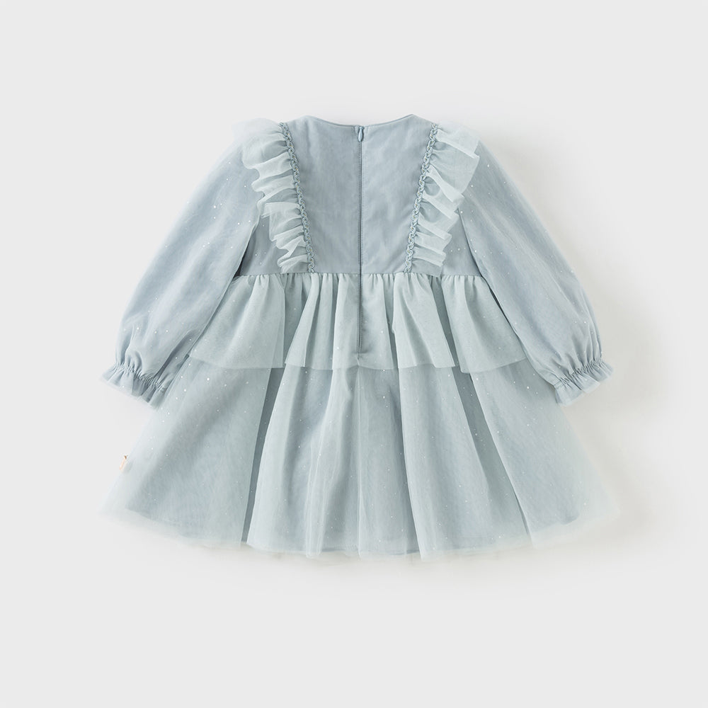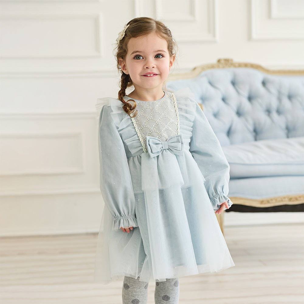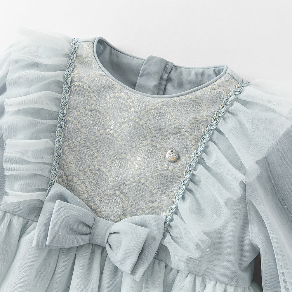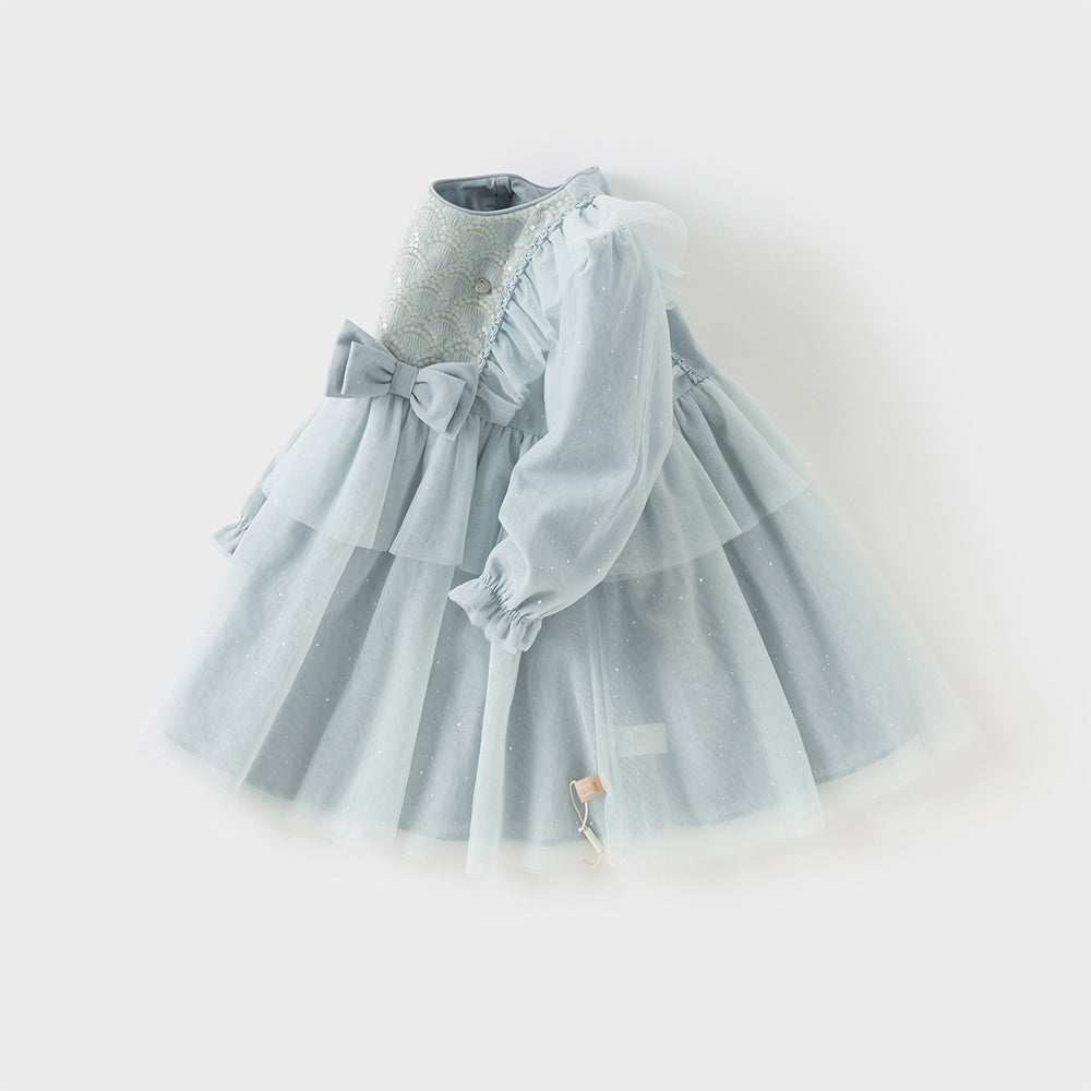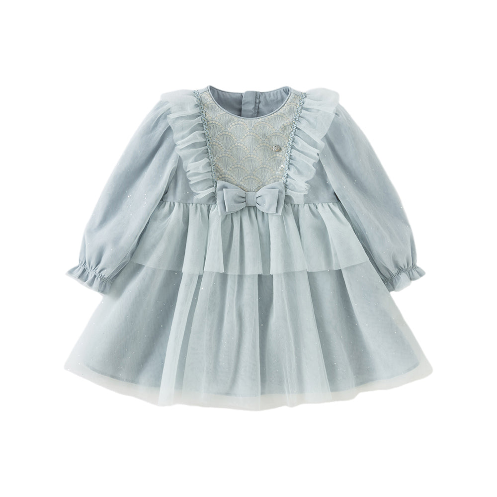 Dave&Bella Girls Autumn Elegance Grey Blue Mesh Charming Princess Dress