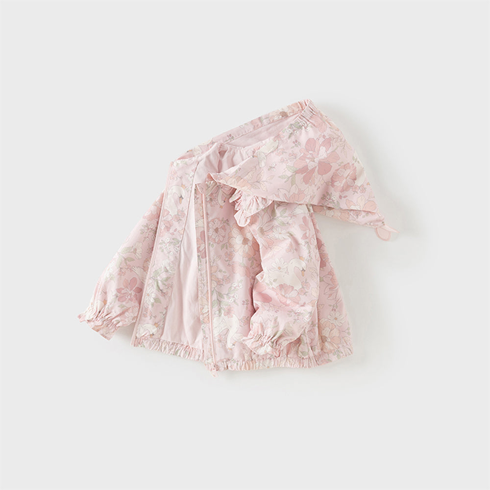 Dave&Bella Girls Autumn Pink Floral Print Hoodie Jacket Coat