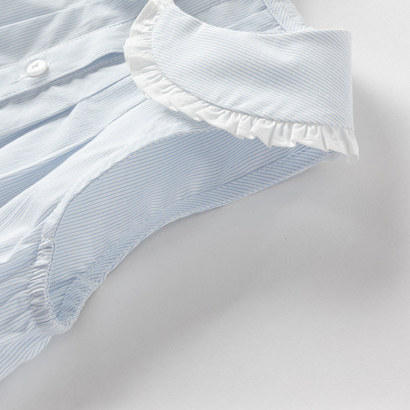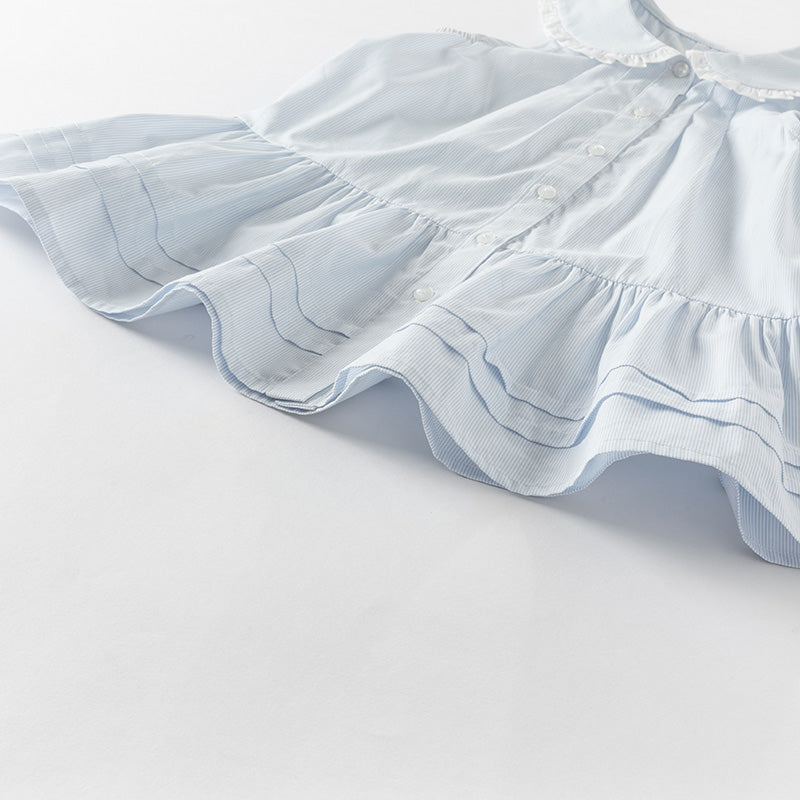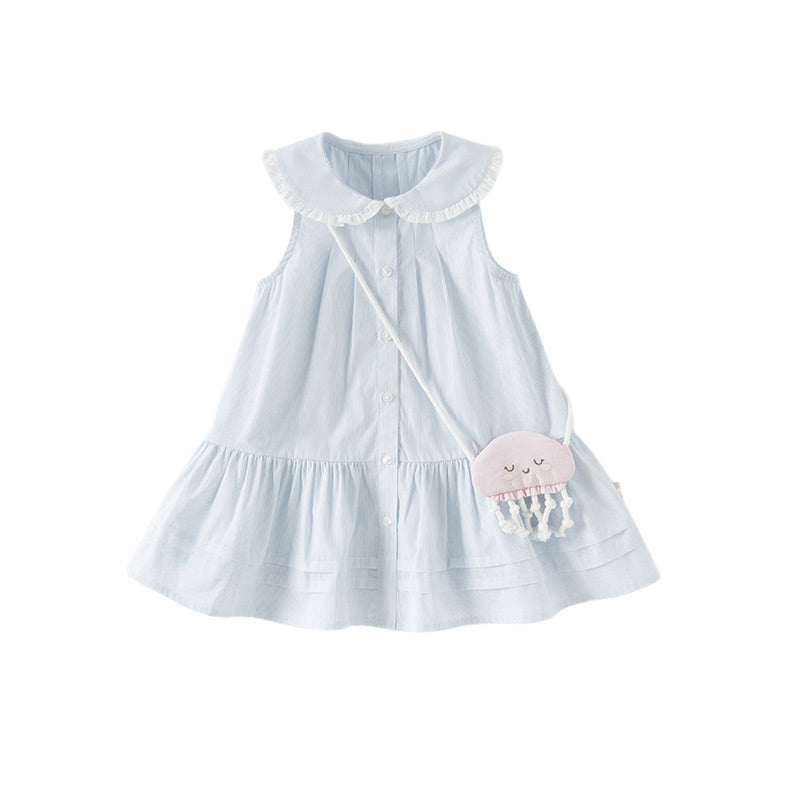 Dave&Bella Girls Summer Cotton Blue White Striped Cute Sleeveless Dress (wallet bag)