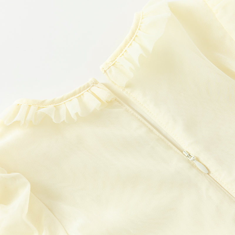 * Adorable short-sleeve mesh party dress
