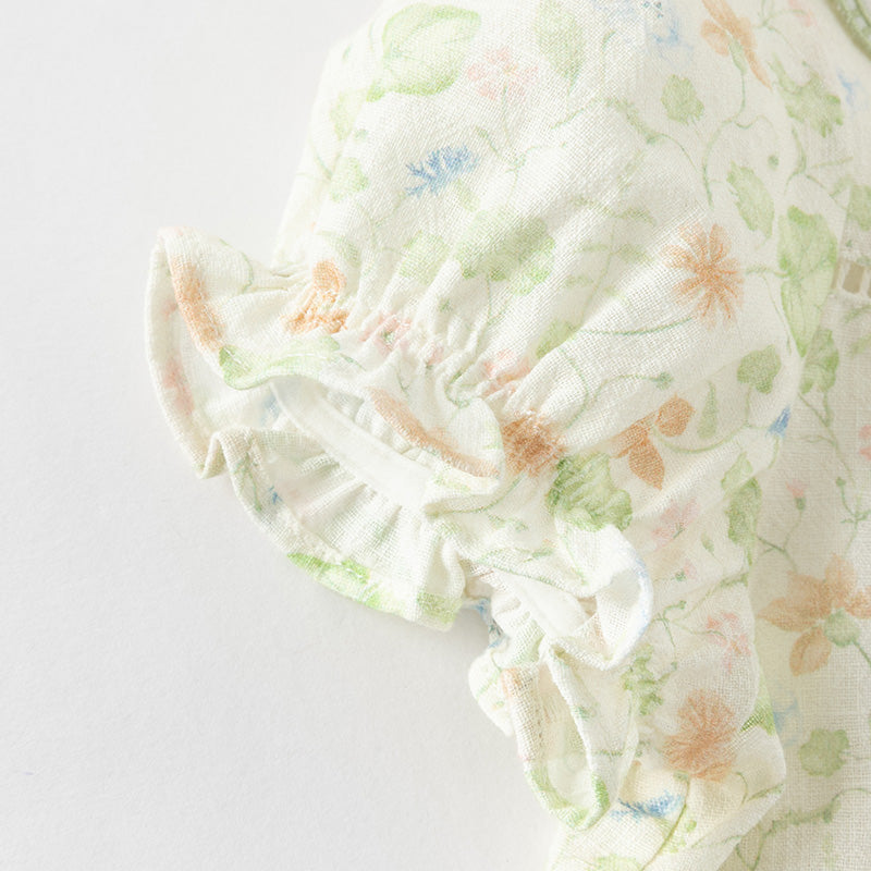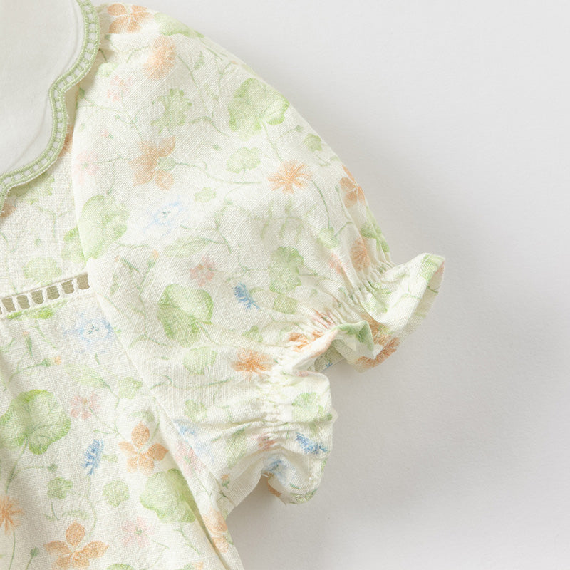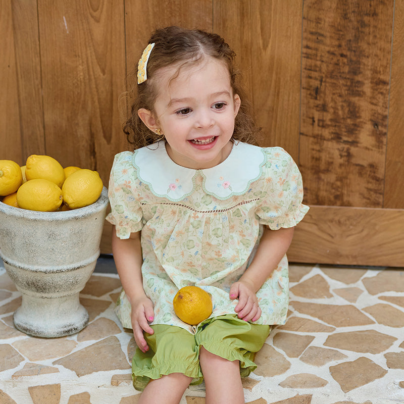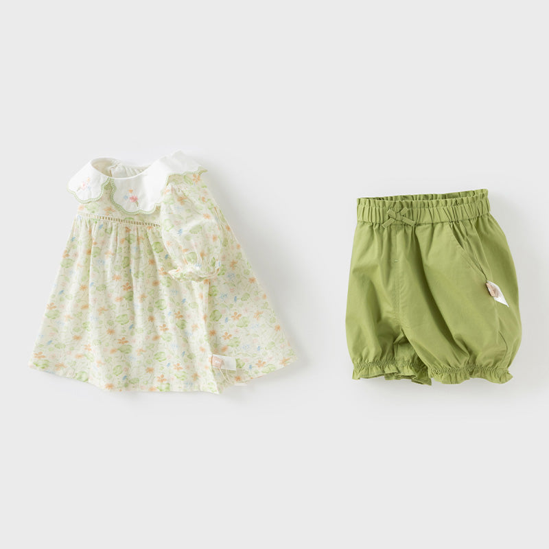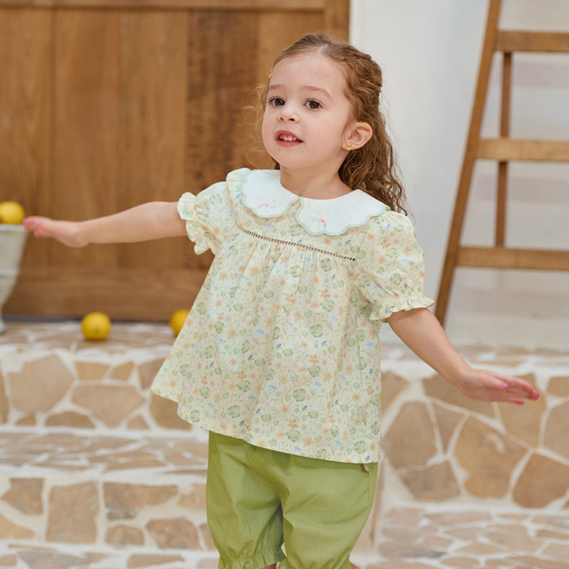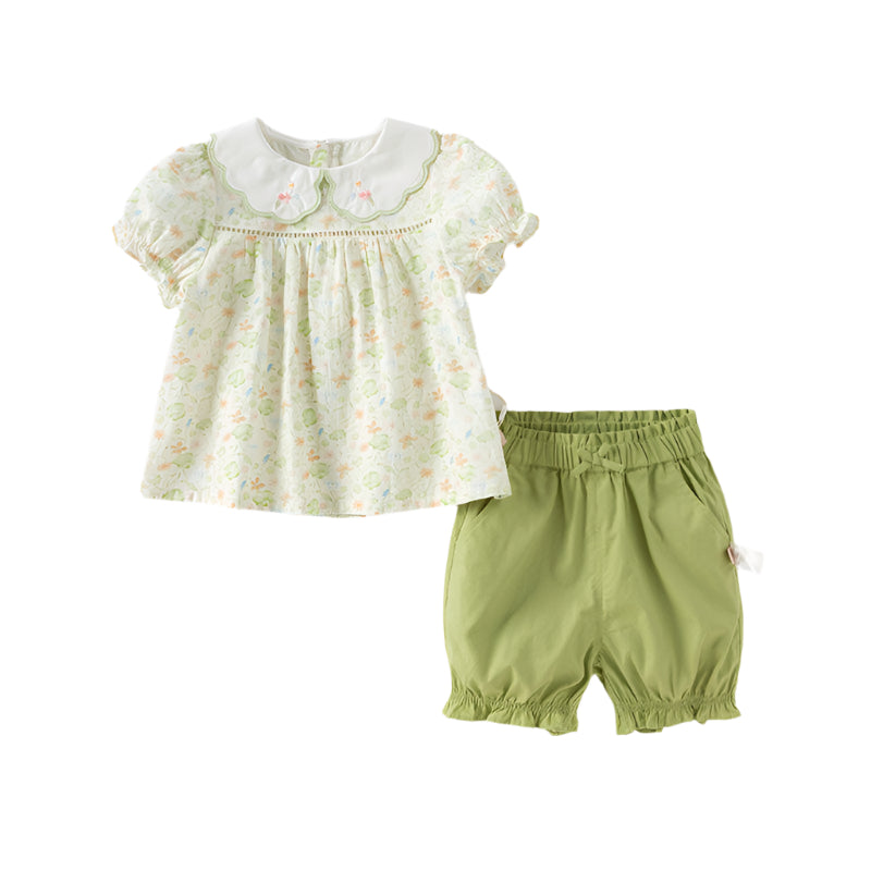 Dave&Bella Girls Summer Pure Cotton Green Floral Print T-shirt Short Pant Set