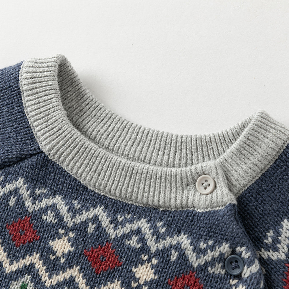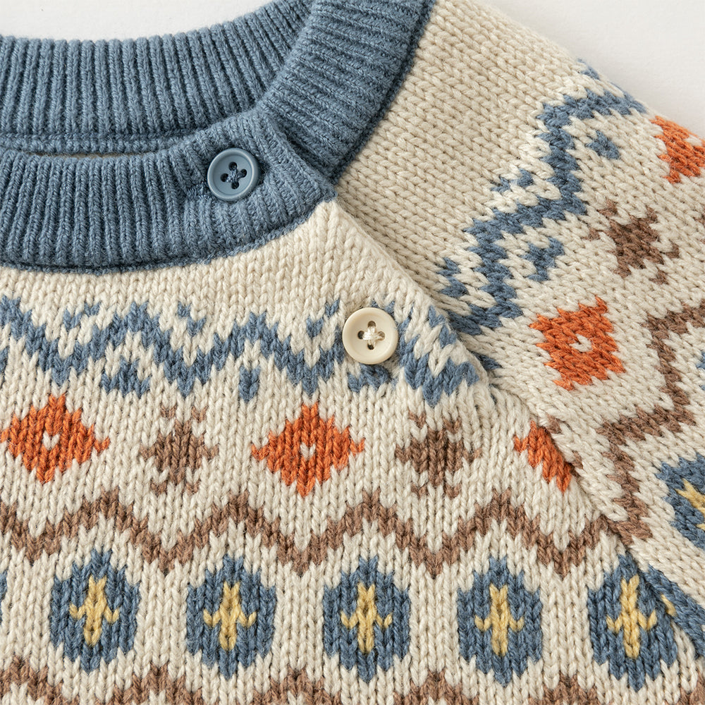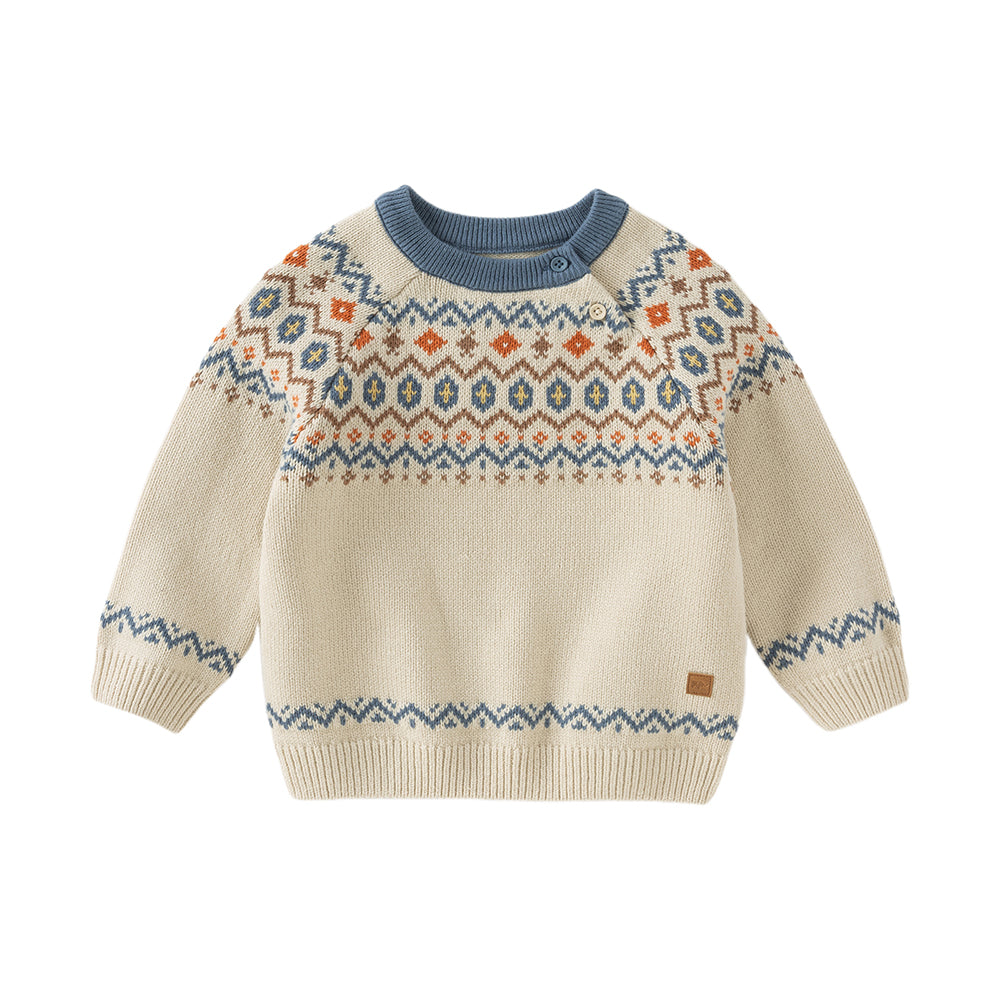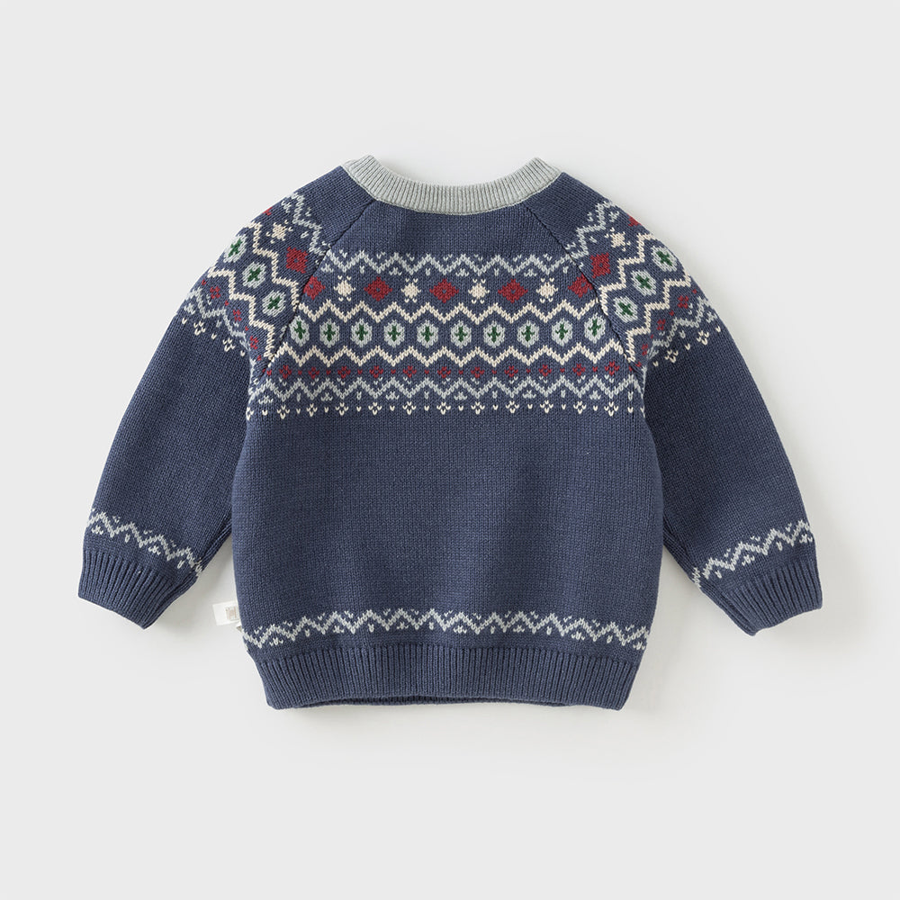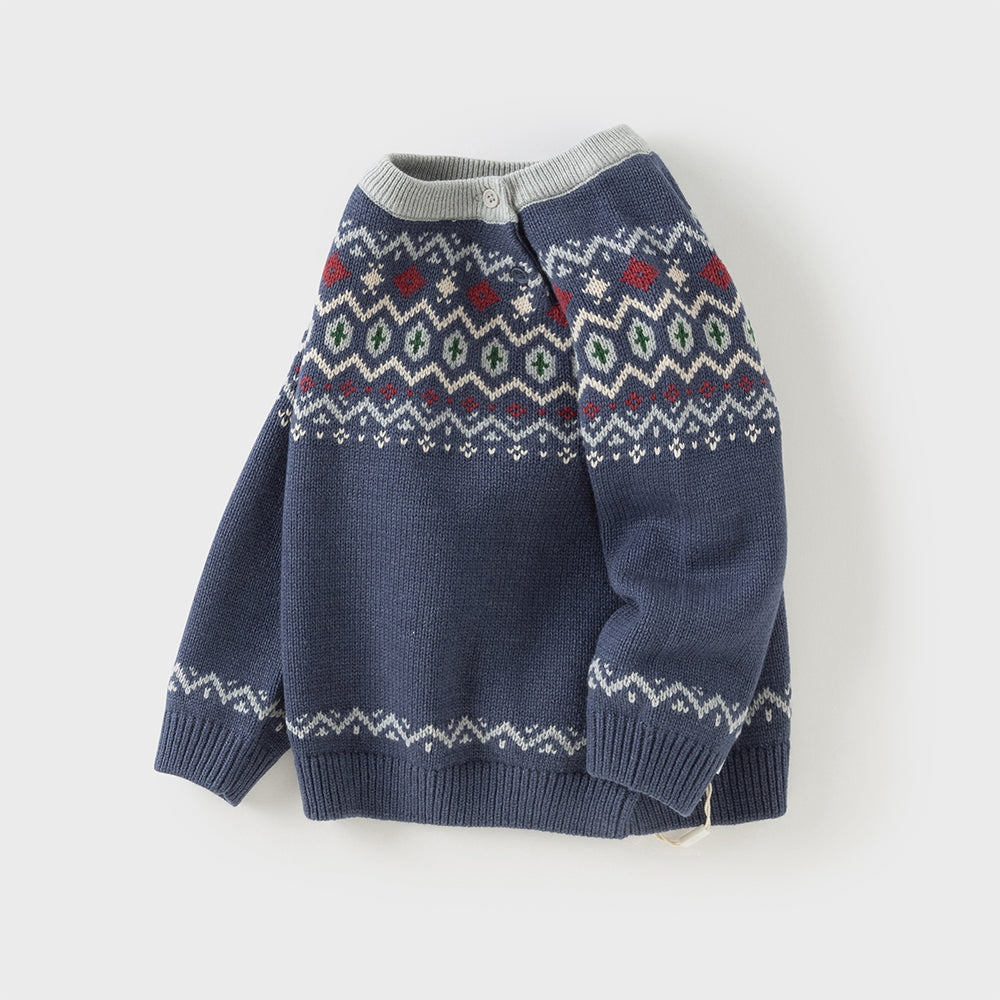 Dave&Bella Kids Boys Autumn Apricoot/Blue Classic Round Collar Warm Sweaters Tops
