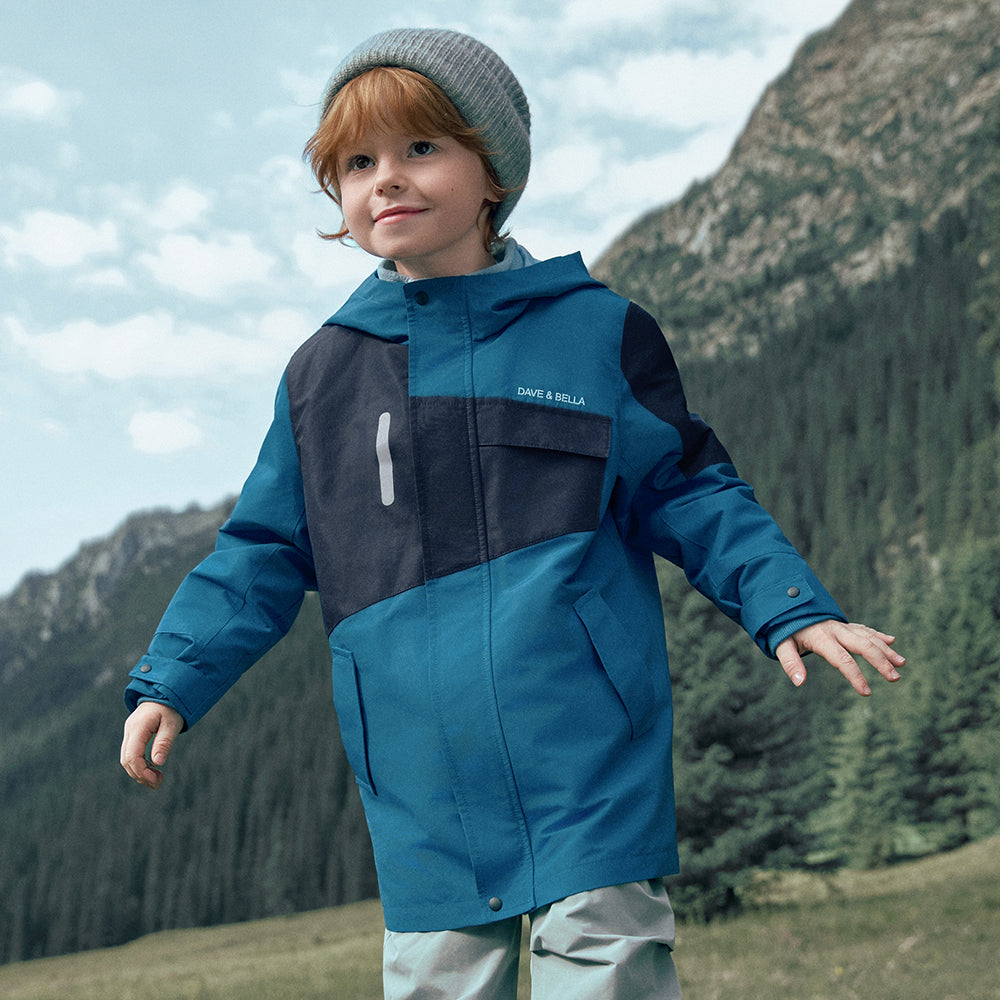 Dave&Bella Kids Boys Blue Outwear Hooded Mid-length Two-piece Padded Coats Set