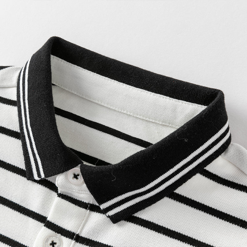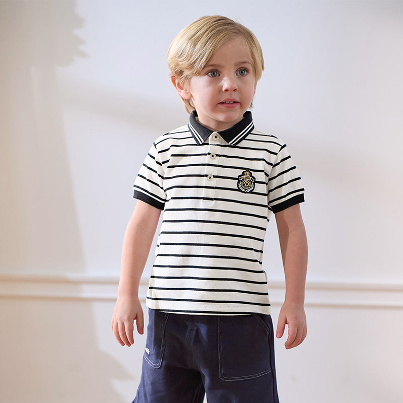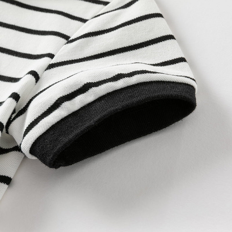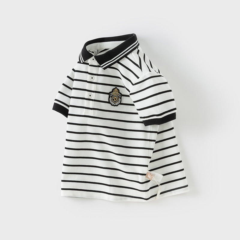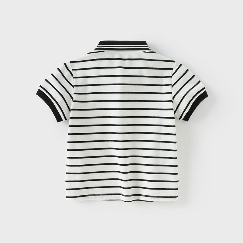 Dave&Bella Kids Boys Summer Black White Striped College-style Short-sleeved Polos