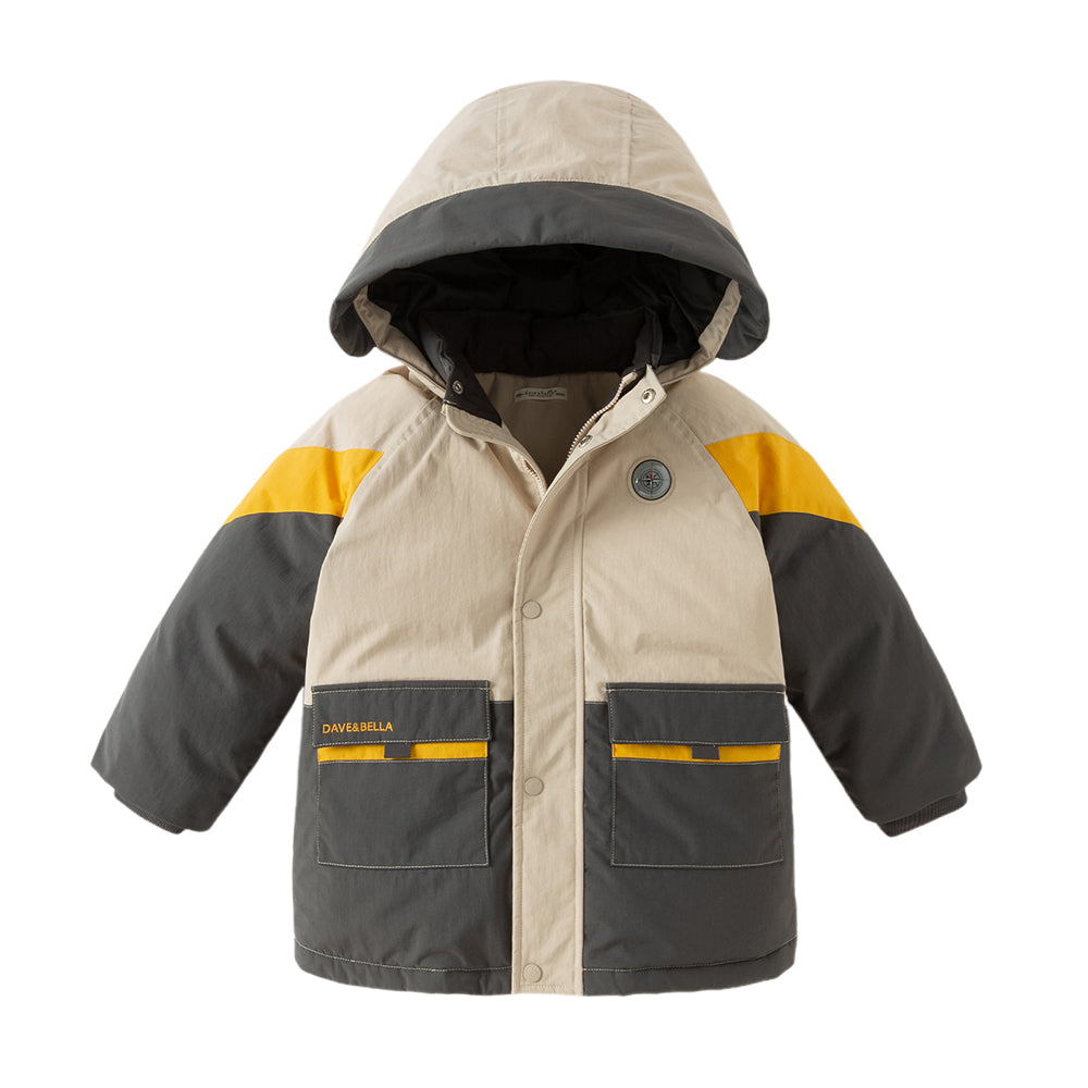 Dave&Bella Kids Boys Winter Casual Khaki Outwear Hooded Fleece-lined Cozy Down Coats