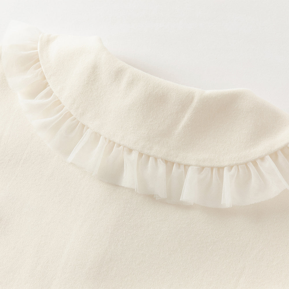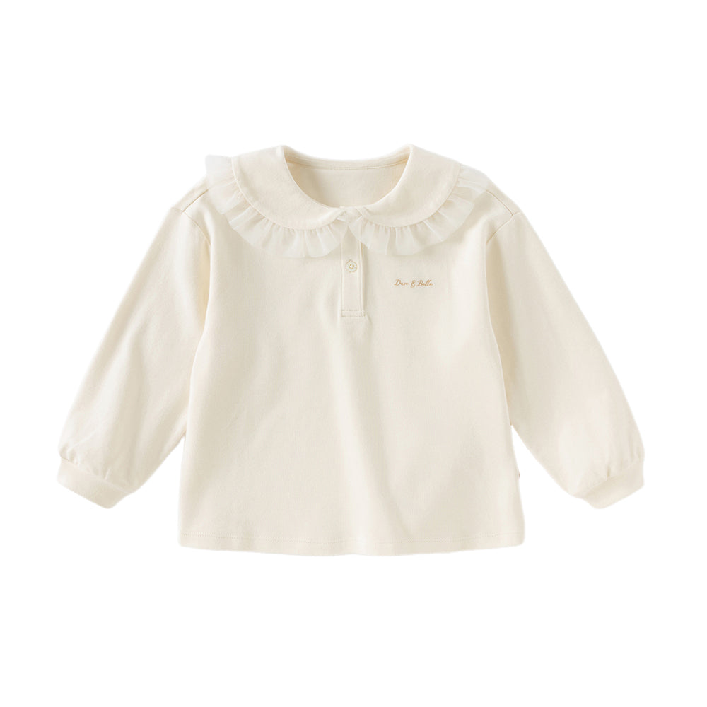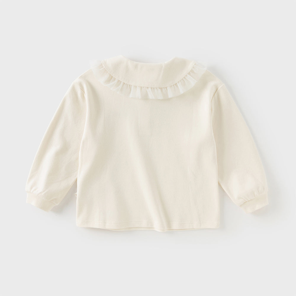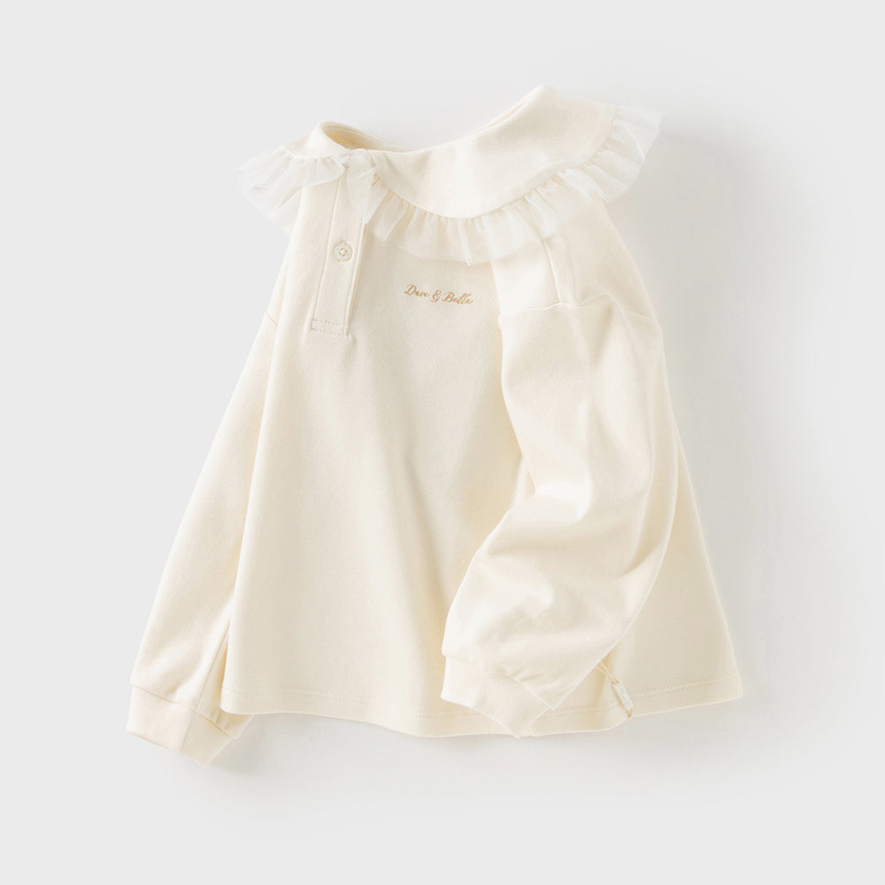 Dave&Bella Kids Girls Autumn Cotton Pearl White Sweet T-shirt Tops