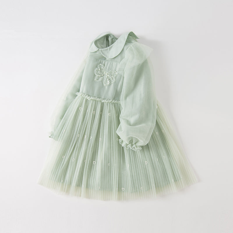 Dave&Bella Kids Girls Autumn Elegance Green Doll Collar A-line Mesh Dress