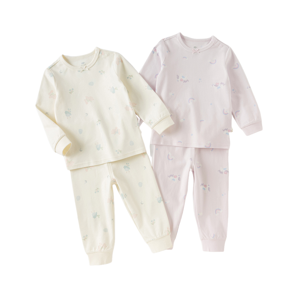 Dave&Bella Kids Girls Autumn Pure Cotton Purple/Beige Cute Pajamas Set