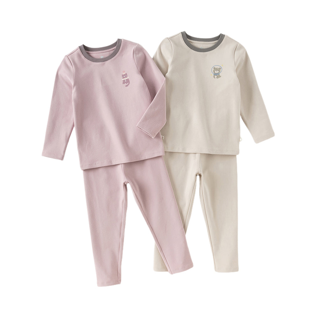Dave&Bella Kids Girls/Boys Autumn Cotton Apricot/Purple Pink Breathable Pajamas Sets