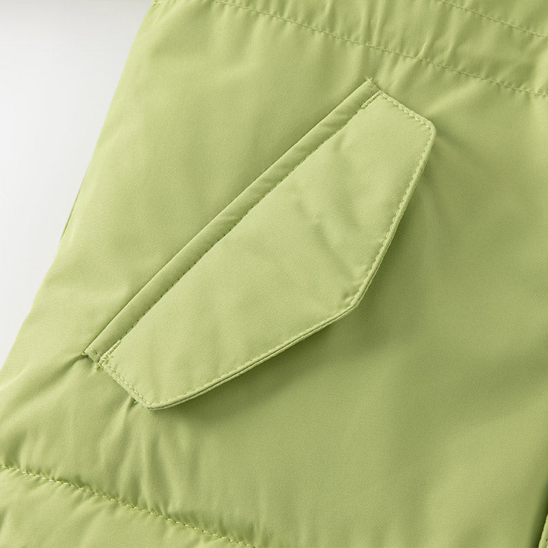 | Size | Down Filling Weight | Length (cm/in) | Chest (cm/in) | Shoulder (cm/in) | Sleeve (cm/in) | Front Center Button (Visible*Hidden) |