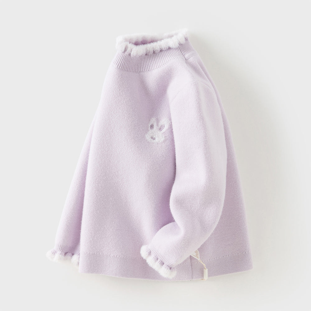 Dave&Bella Kids Girls Elegant Purple Soft Turtle  Plush-lined Sweaters Tops