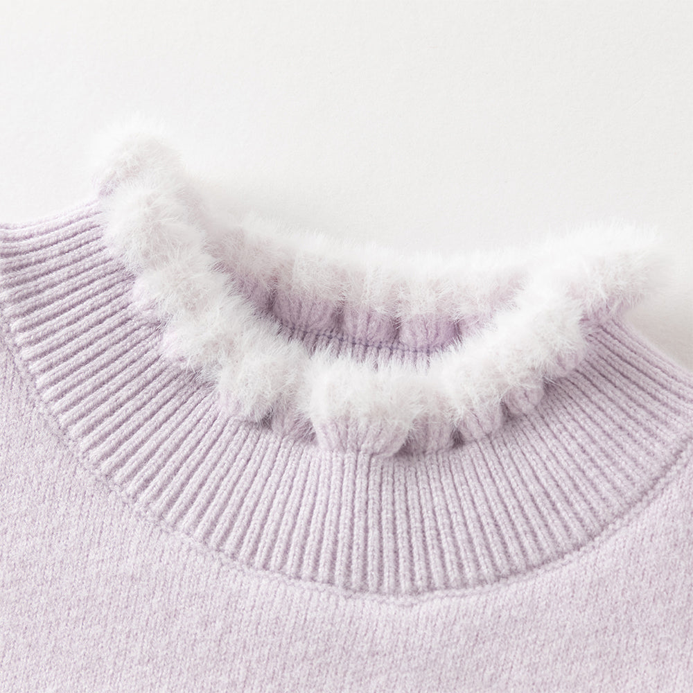 Dave&Bella Kids Girls Elegant Purple Soft Turtle Plush-lined Sweaters Tops