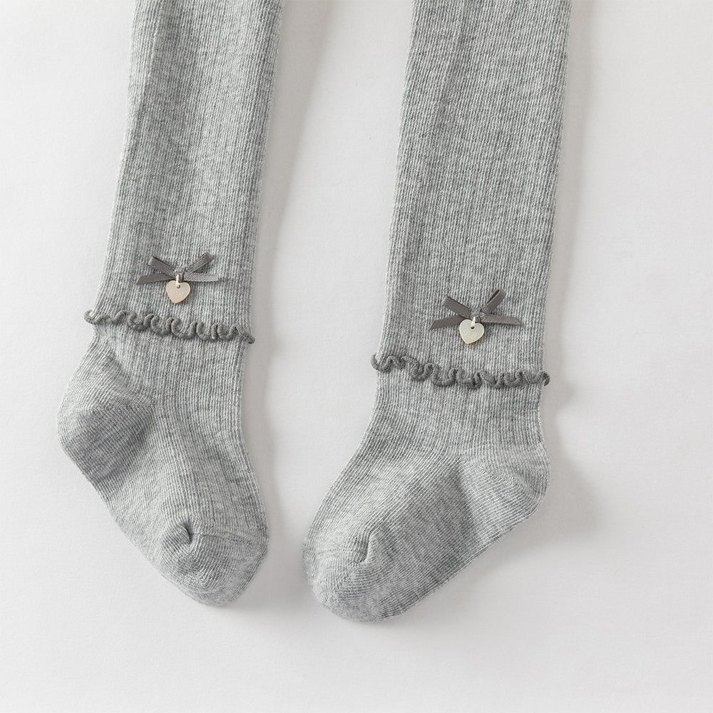 Dave&Bella Kids Girls Grey/Beige Cute Bow Slim Stretchable Footed Tights Leggings