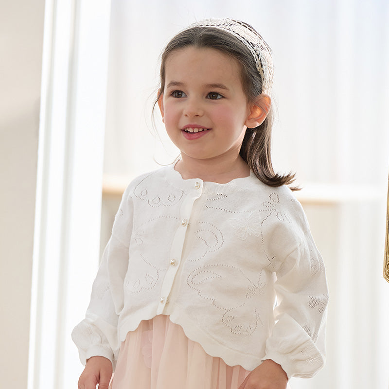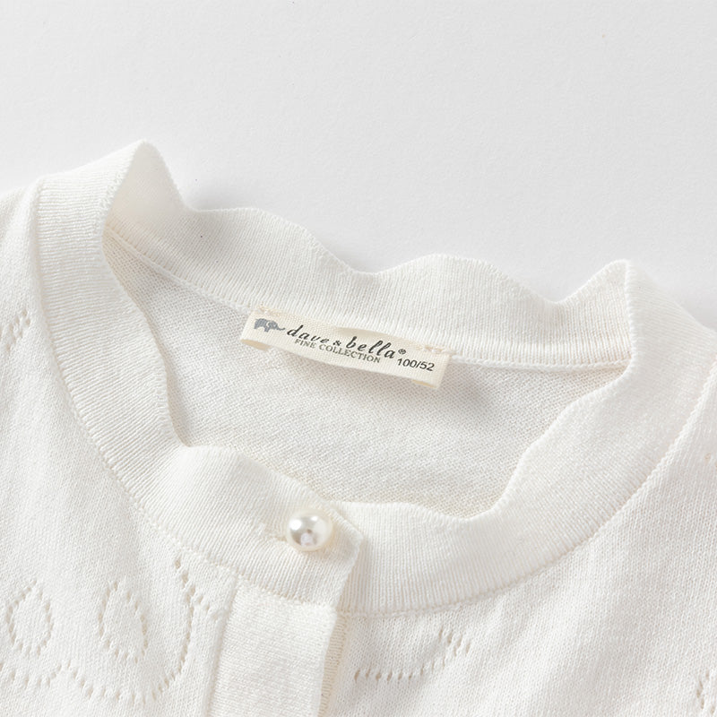Dave&Bella Kids Girls Pearl White Breathable Cotton Long Sleeve Cardigans