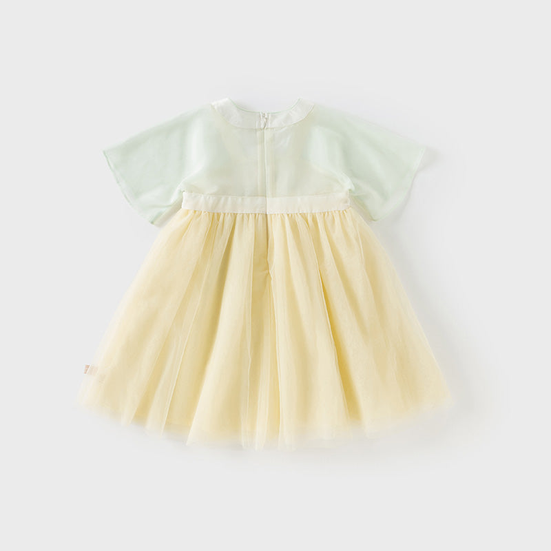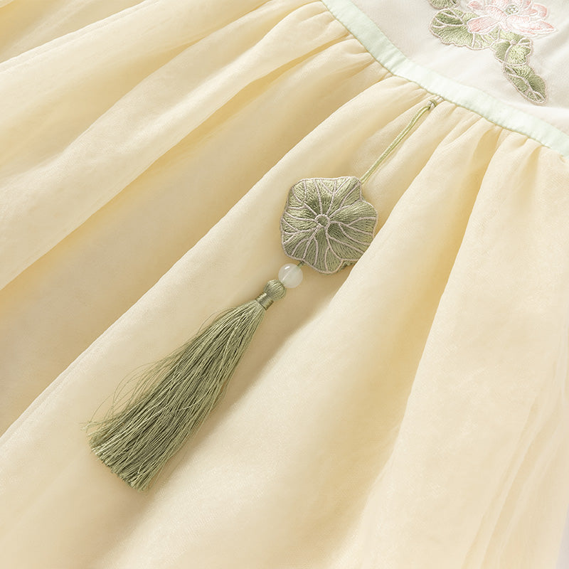 Dave&Bella Kids Girls Summer Classic Lotus Embroidered Chinese-style Mesh Dress