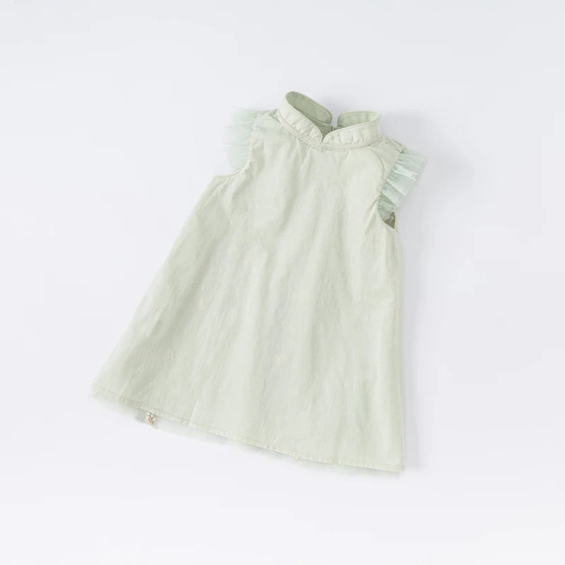 Dave&Bella Kids Girls Summer Grey Green Floral Sleeveless A-line Dress(wallet bag)