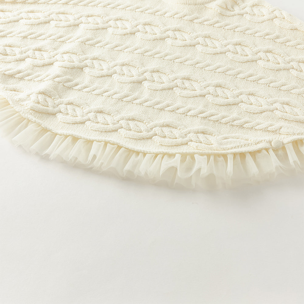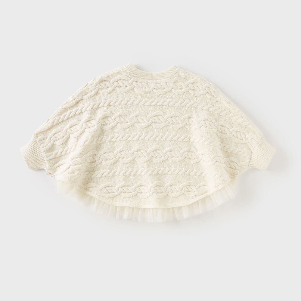 Dave&Bella Kids Girls Winter Elegant Pearl White Cape-style Knit Pullover Sweaters Tops