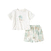 Dave&Bella Summer Toddler Boys Leaf Print White Two-Piece Suit