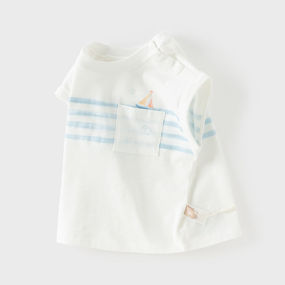 Dave&Bella Summer Toddler Boys White Round Collar Sleeveless Lightweight Tank Tops