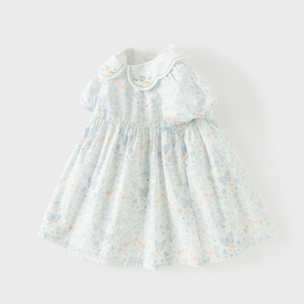 Dave&Bella Summer Toddler Girls Breathable Cotton Floral Print White A-line Party Dress