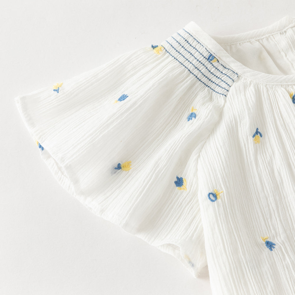 * Cute beige flutter sleeve top with round collar, sweet and breathable