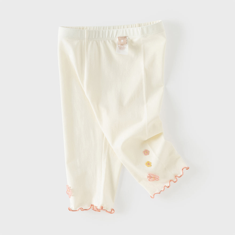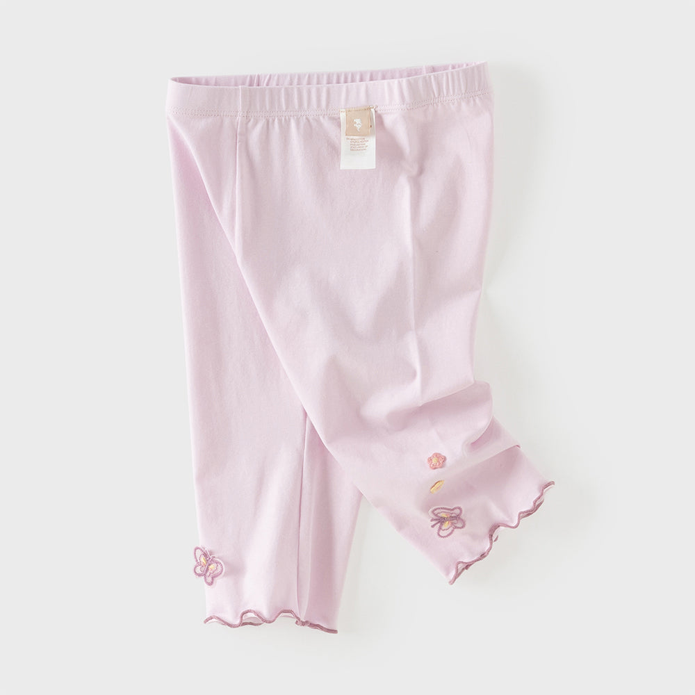 Dave&Bella Summer Toddler Girls White/Purple Flower Slim Soft Leggings