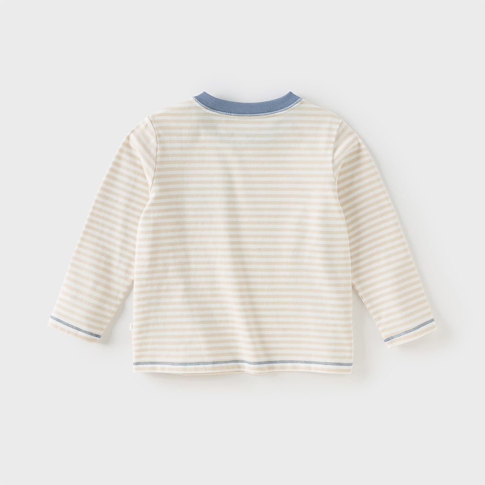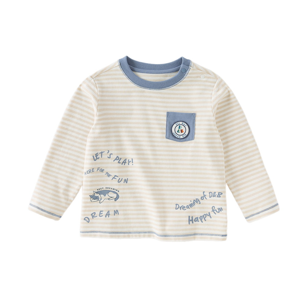 Dave&Bella Toddler Boys Autumn Cotton Apricot Striped T-shirts Tops