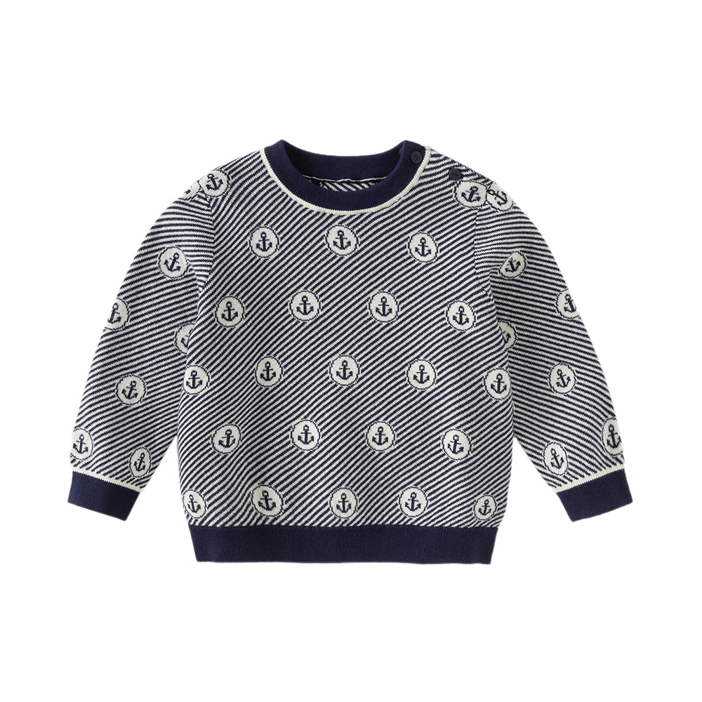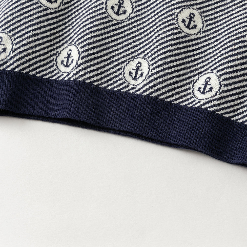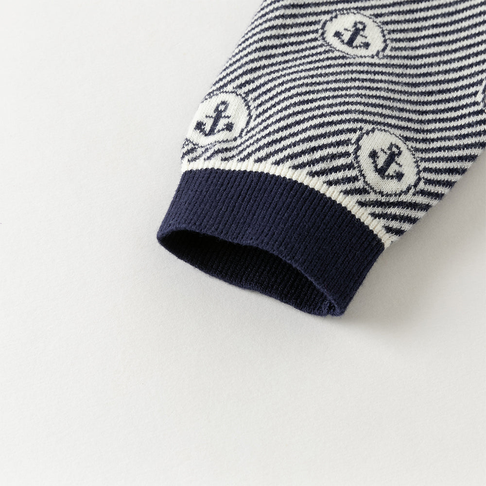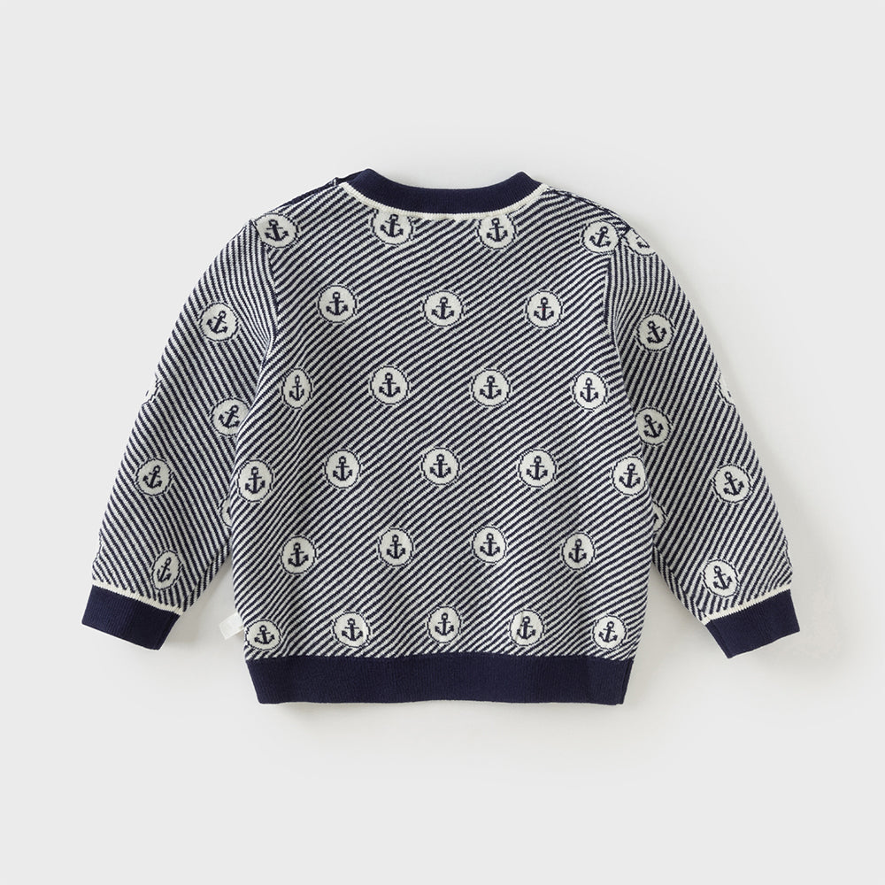 Dave&Bella Toddler Boys Blue White Striped Breathable Cotton Casual Sweaters Tops