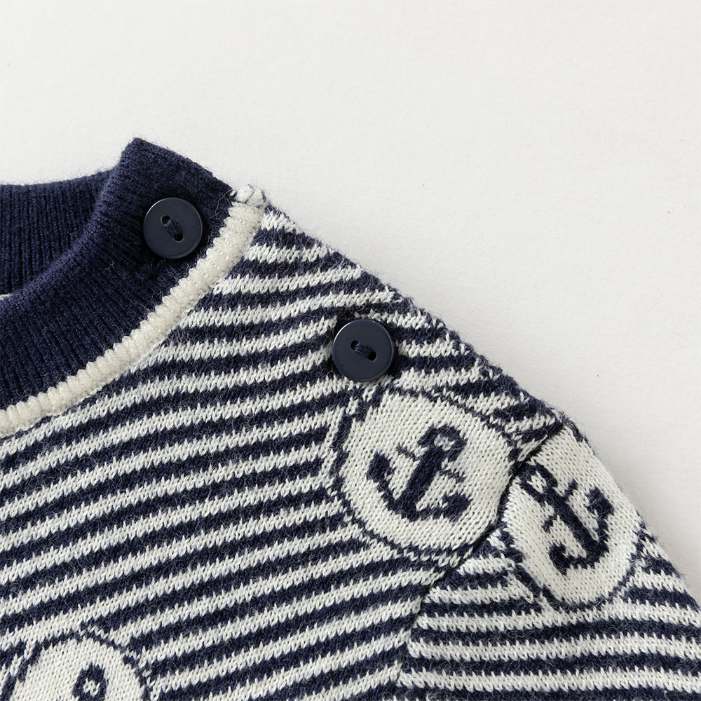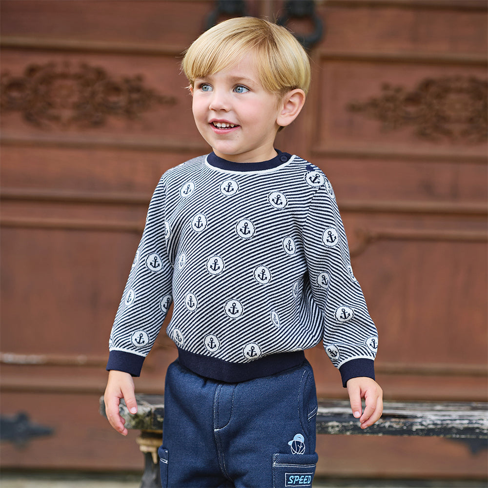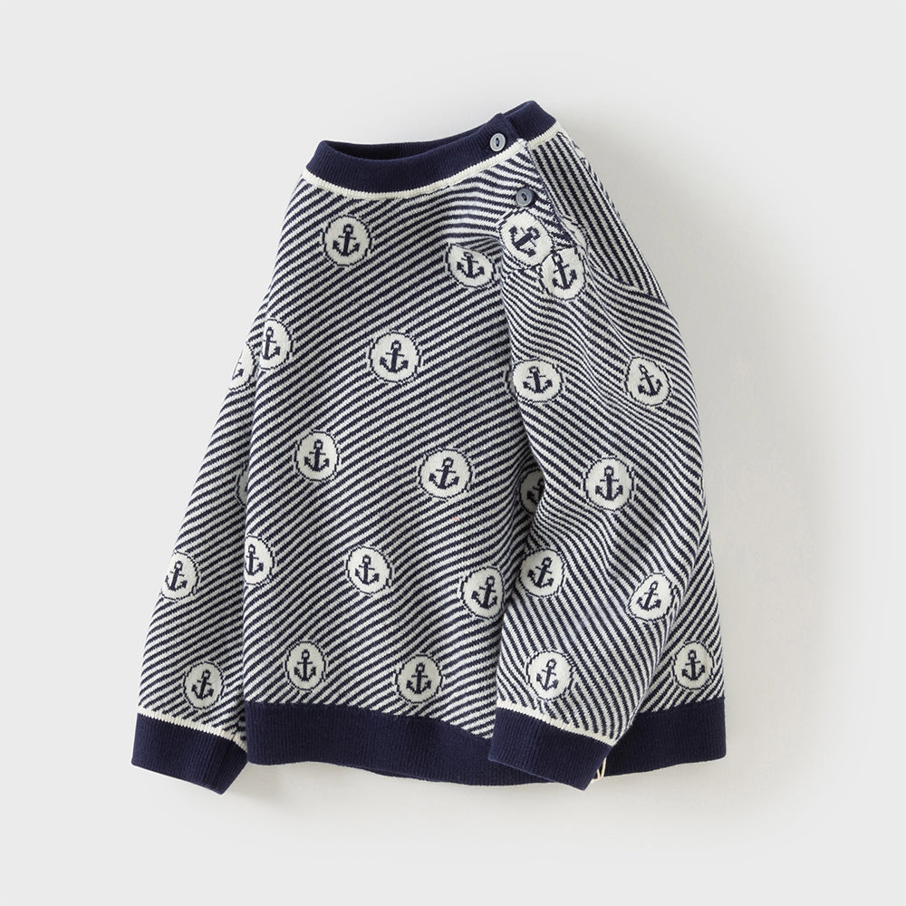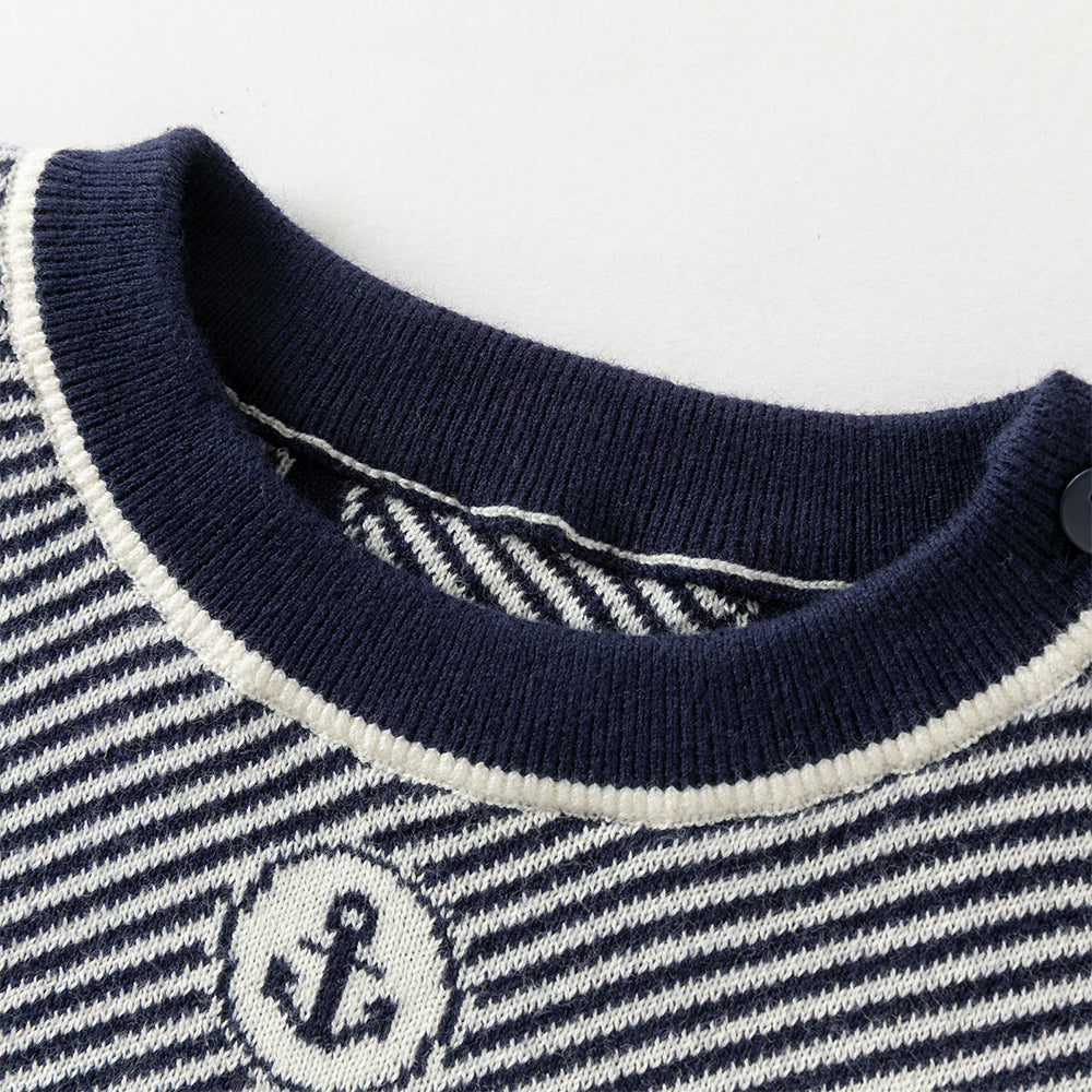 Dave&Bella Toddler Boys Blue White Striped Breathable Cotton Casual Sweaters Tops