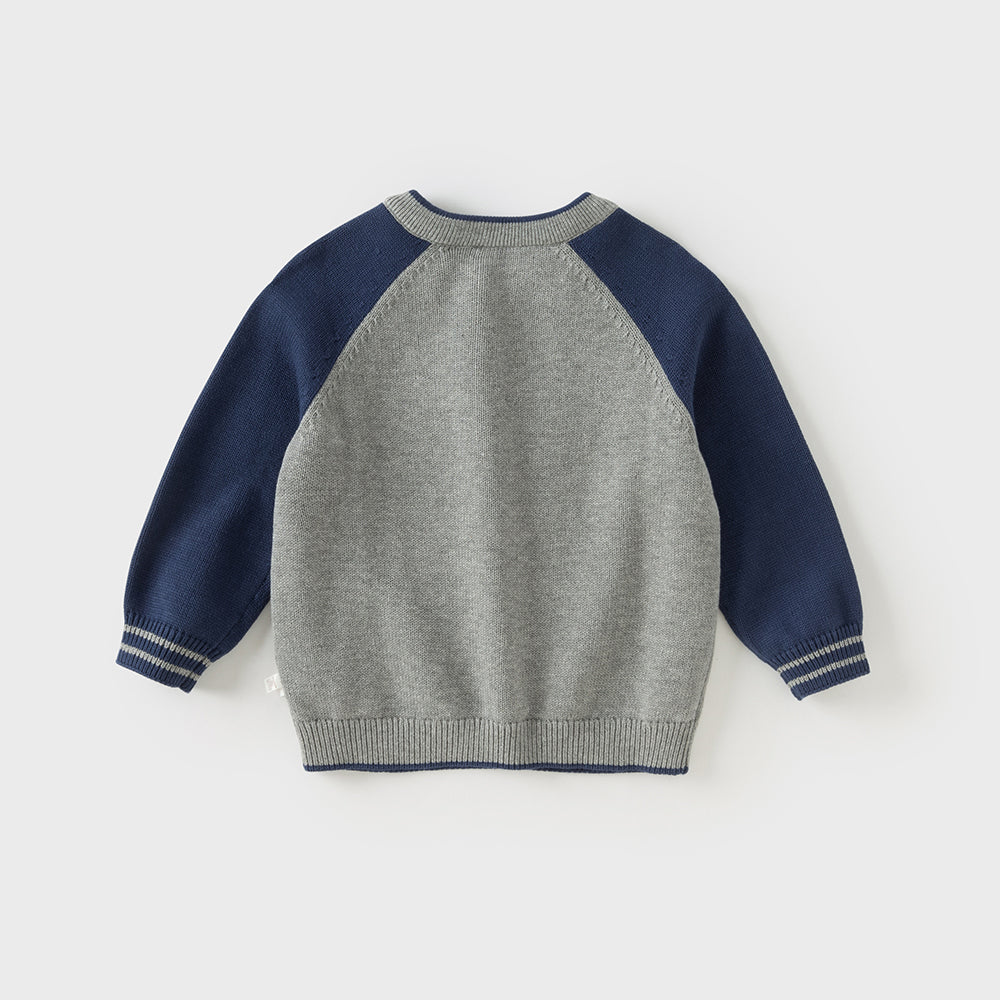Dave&Bella Toddler Boys Cute Cartoon Print Grey Long-sleeved Pure Cotton T-shirts Tops