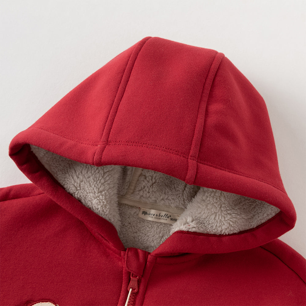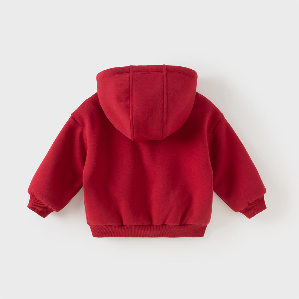 Dave&Bella Toddler Boys Festival Red Long-sleeved Hooded Outwear Plush-lined Coats