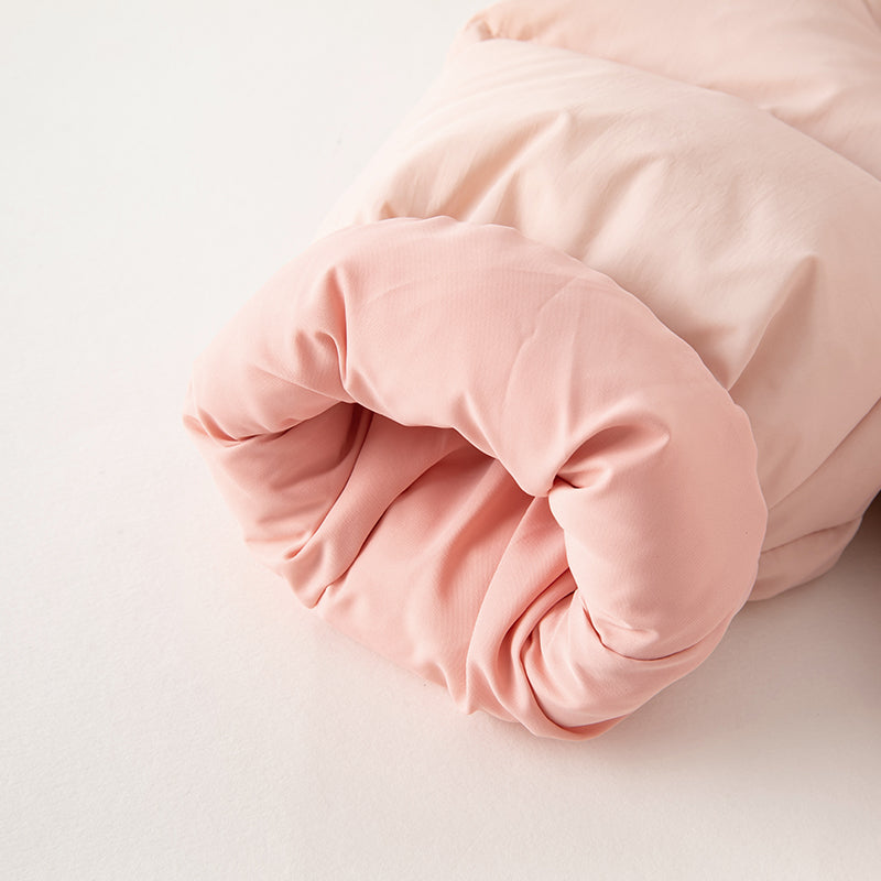 The most important step: give your coat a good shake! This helps it regain its natural shape and fluffiness. You can also leave it to rest for 1–3 minutes, allowing it to bounce back on its own. The higher the down content, the more compressed it will appear, but rest assured, this is completely normal due to the vacuum process, and it does not affect the quality of the coat.