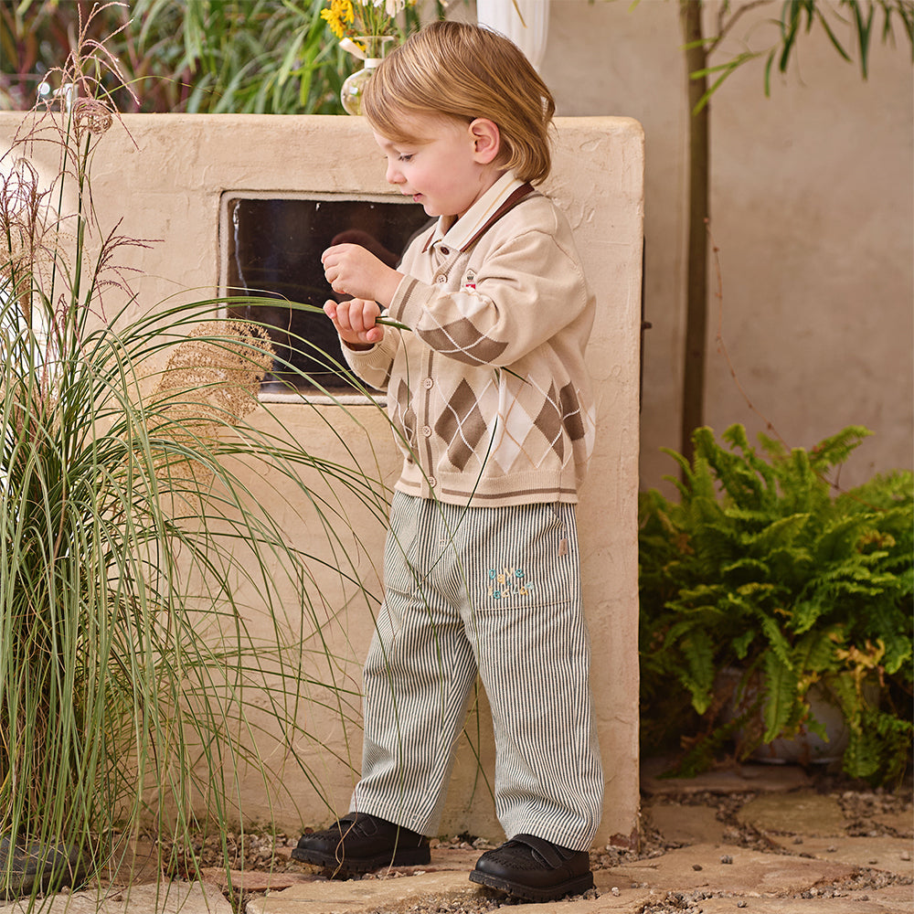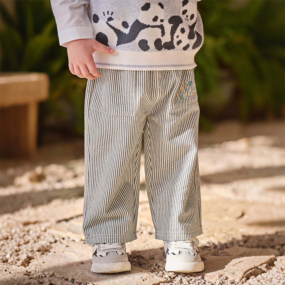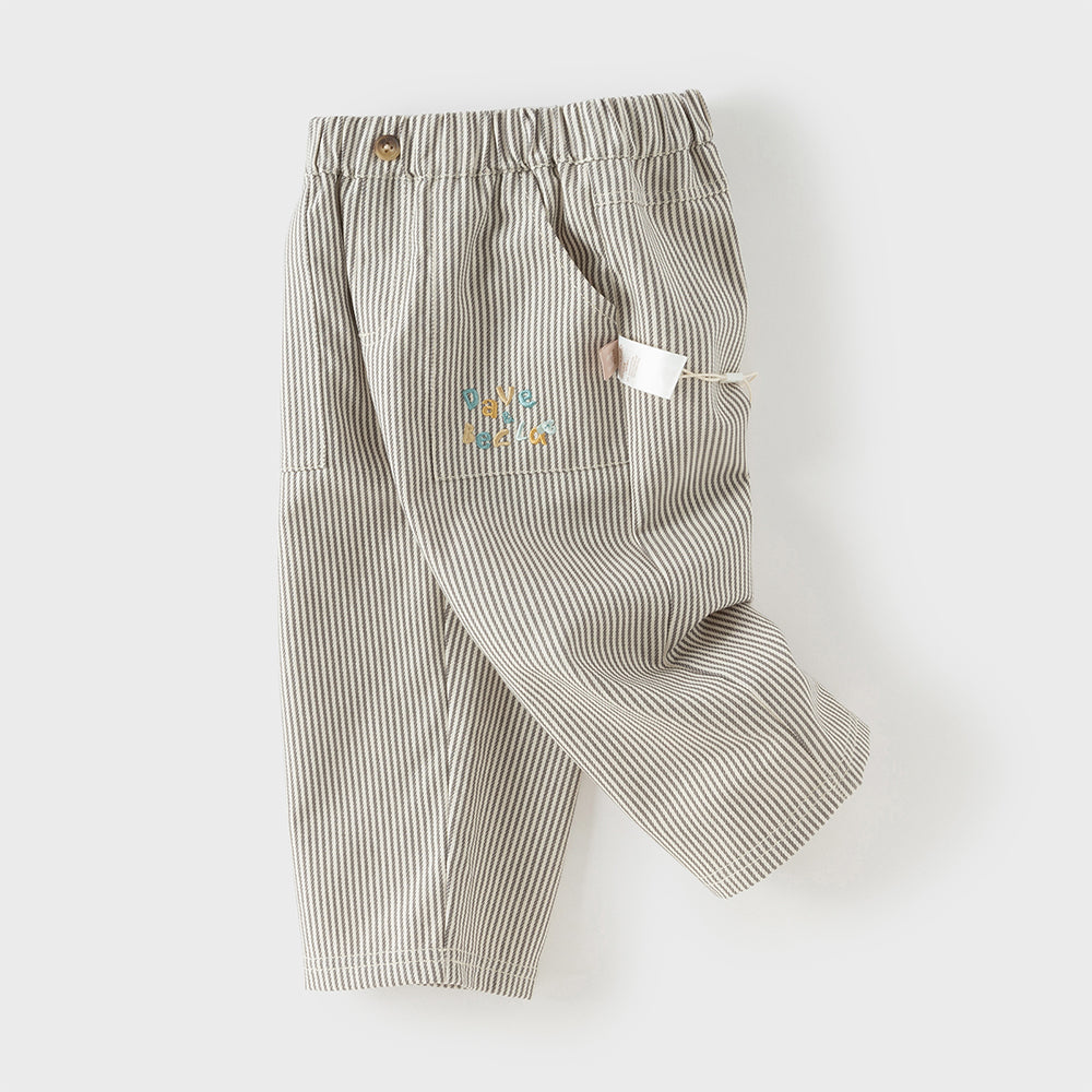 Dave&Bella Toddler Boys Grey White Striped Cotton Straight-leg Wide Pants