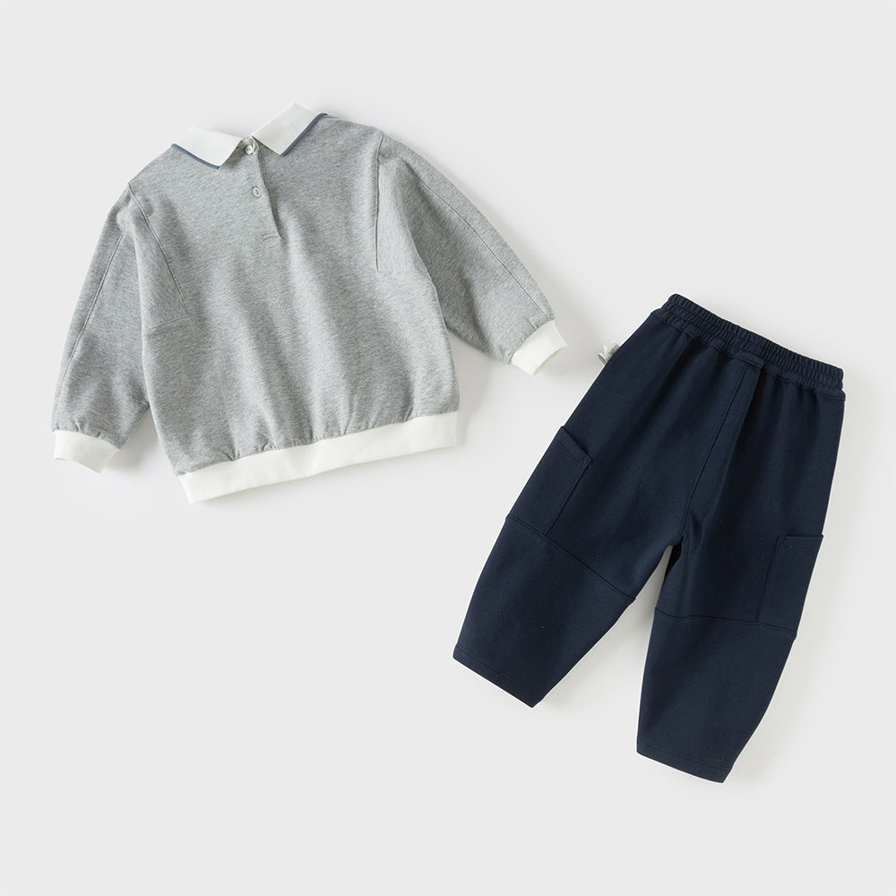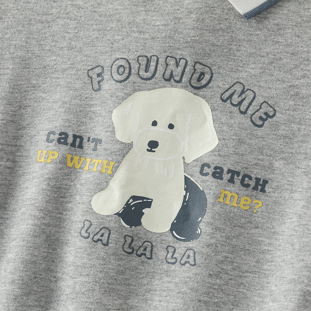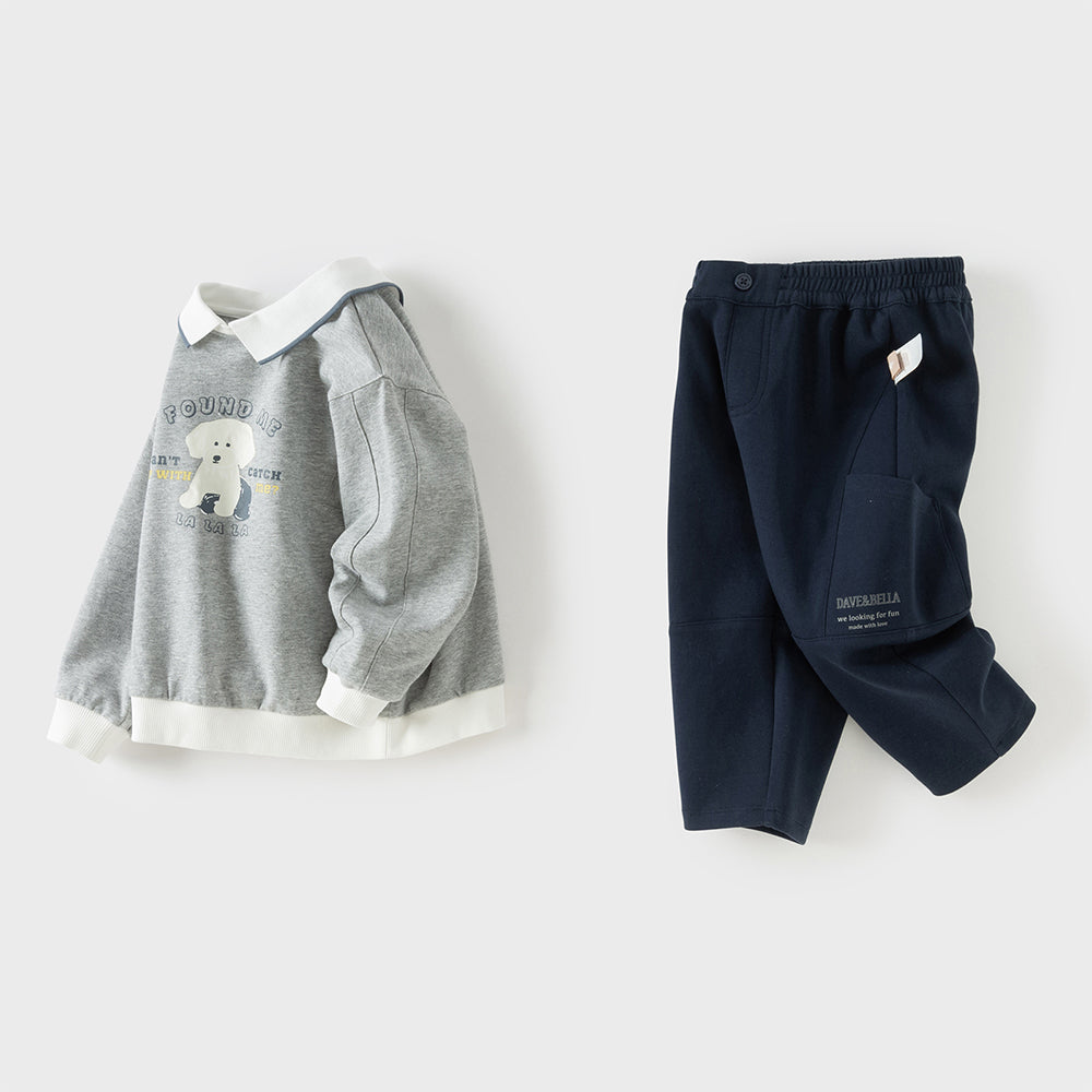 Dave&Bella Toddler Boys Light Grey Dog Print Long Sleeve Top Pant Suits