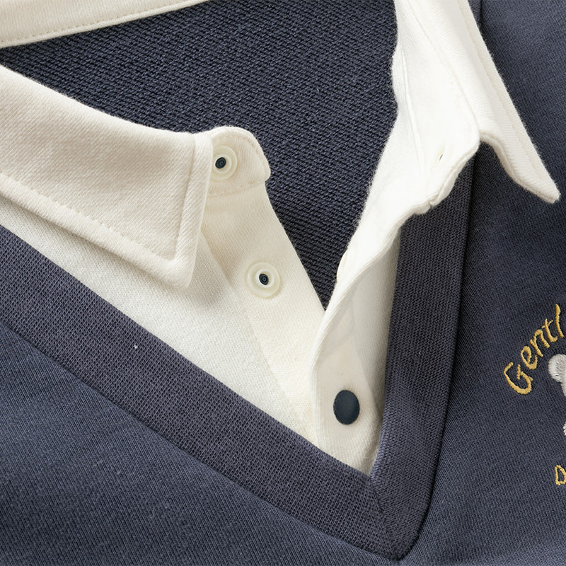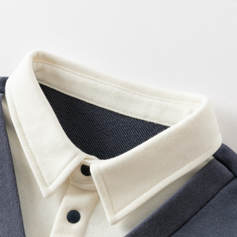 Dave&Bella Toddler Boys Navy Blue Fake Two Piece Knit Pullover Polos T-Shirt Tops