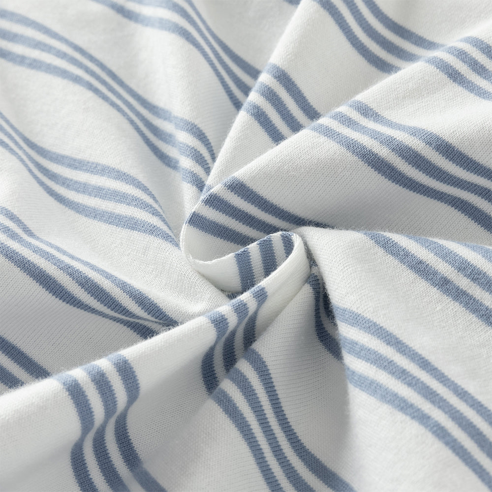 * Playful blue and white striped pattern