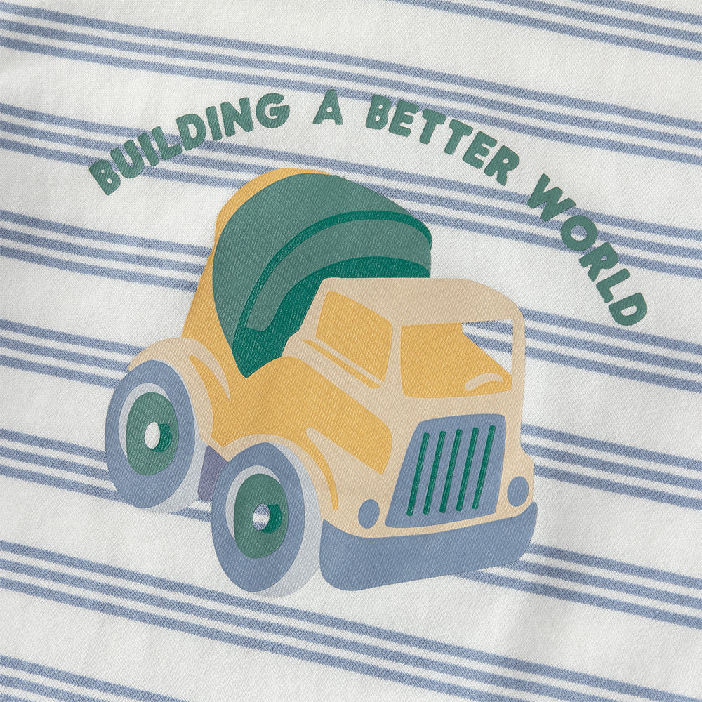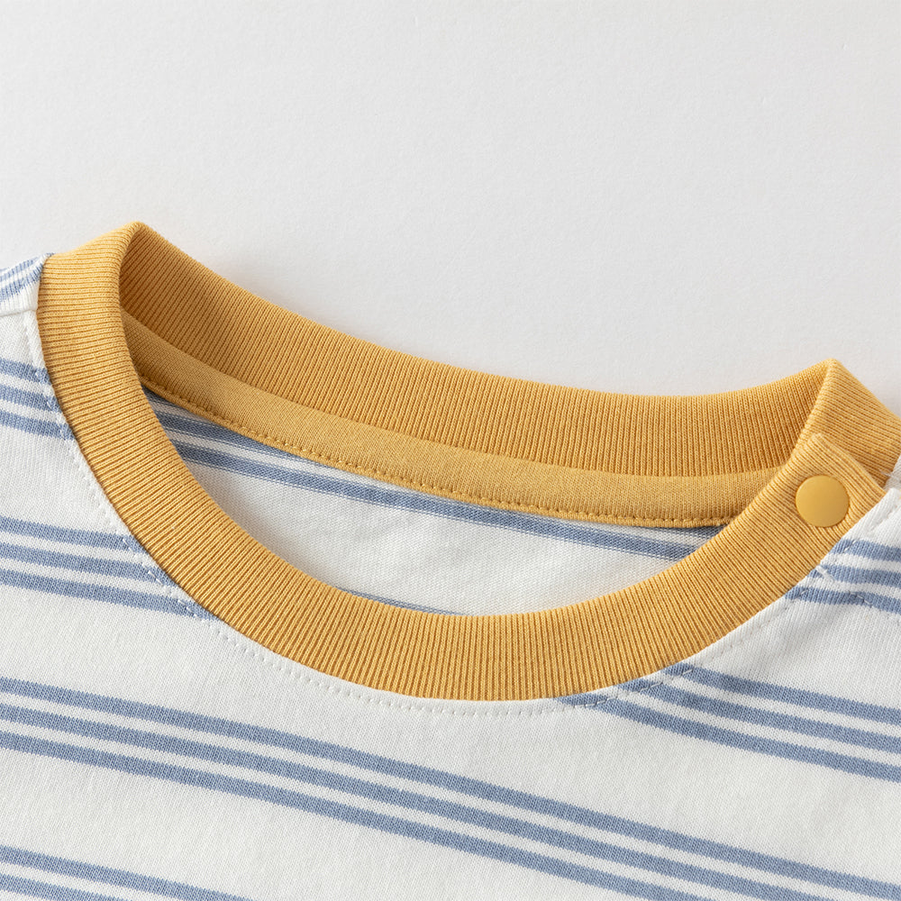 Dave&Bella Toddler Boys Playful Blue White Striped Soft Cotton T-shirt Tops