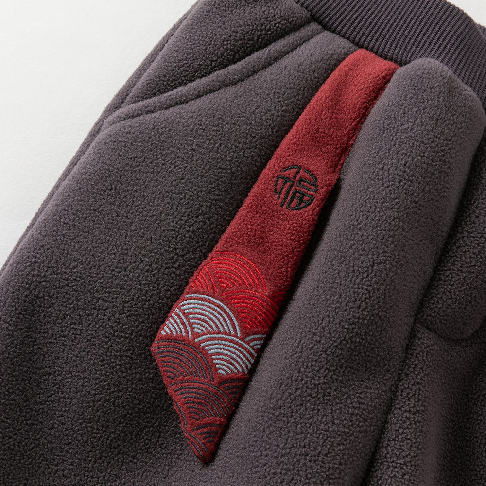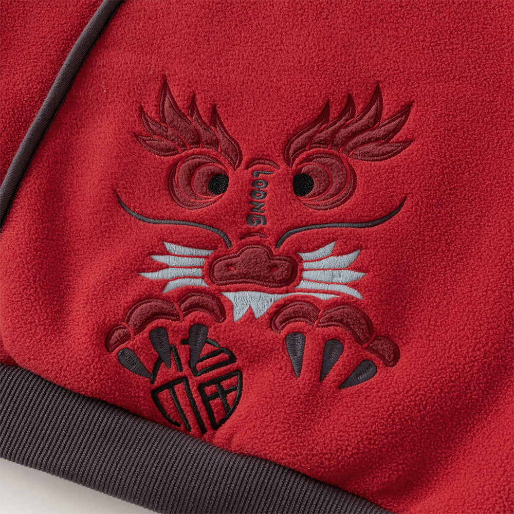 Dave&Bella Toddler Boys Playful Red Chinese-style Hooded Sweatshirt Long Pants Sets