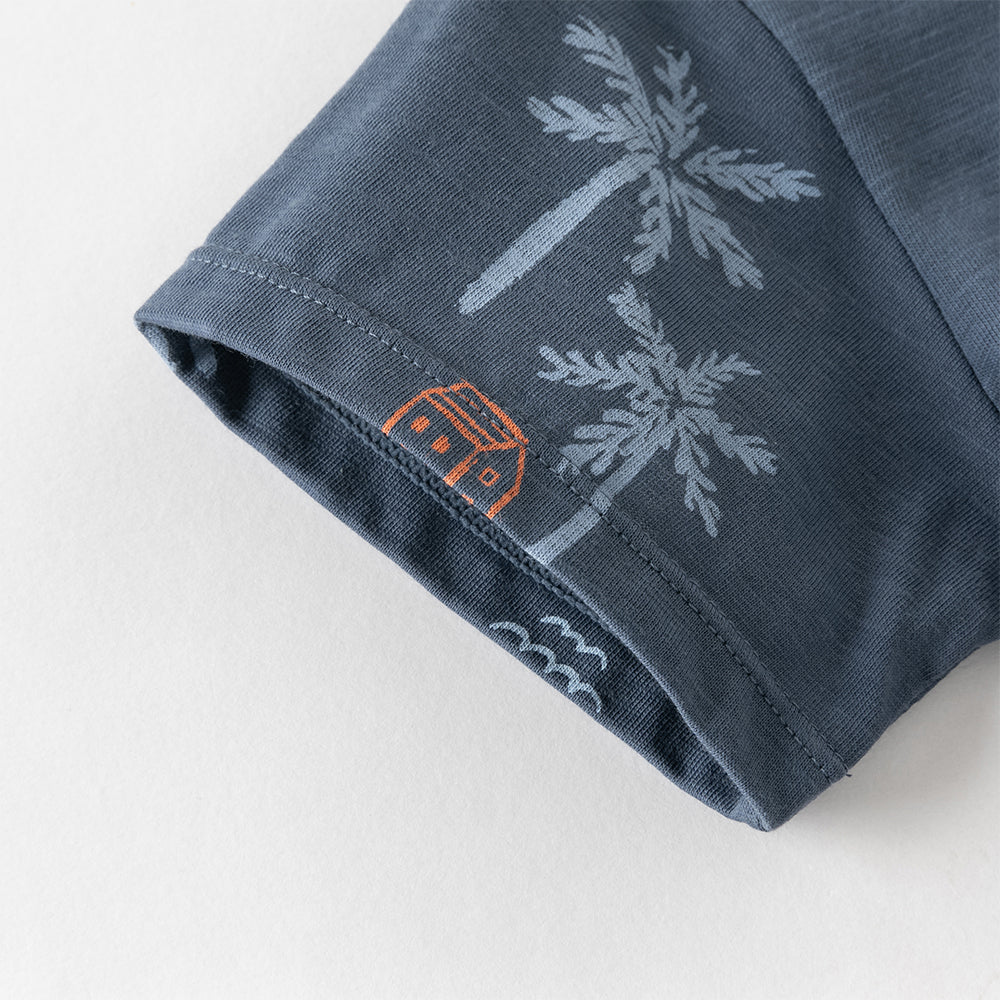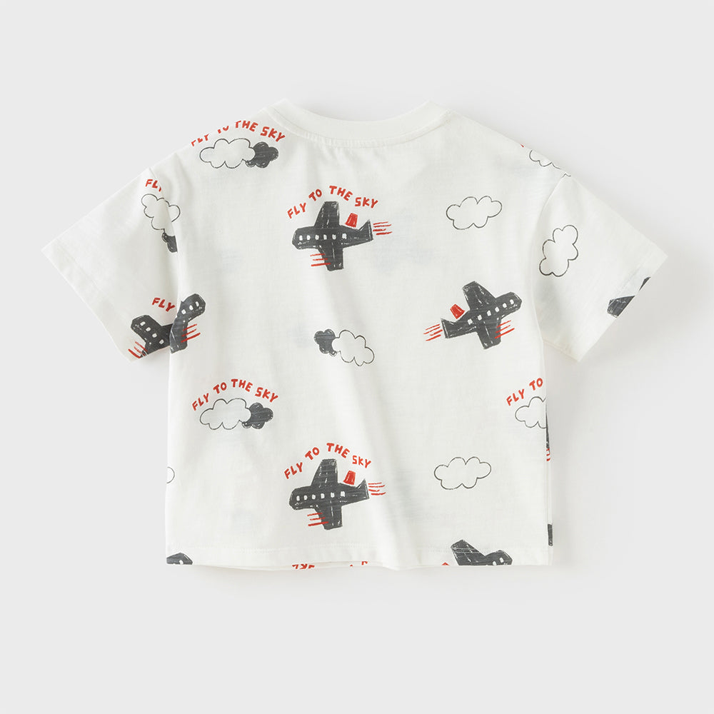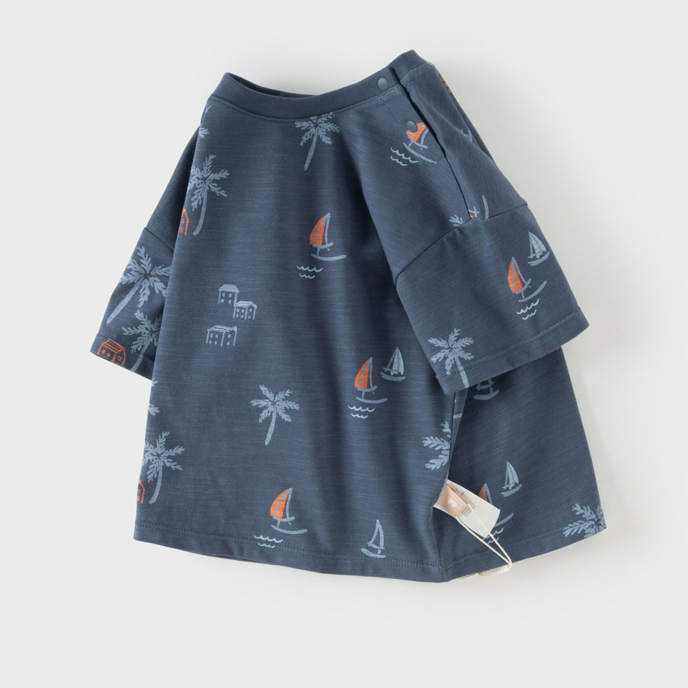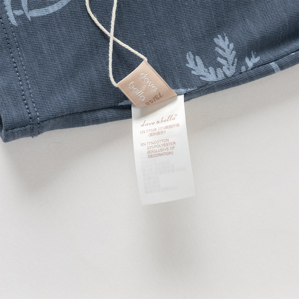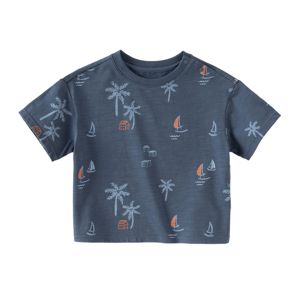 Dave&Bella Toddler Boys Summer Beige/Dark Blue Stylish Print Casual T-shirts